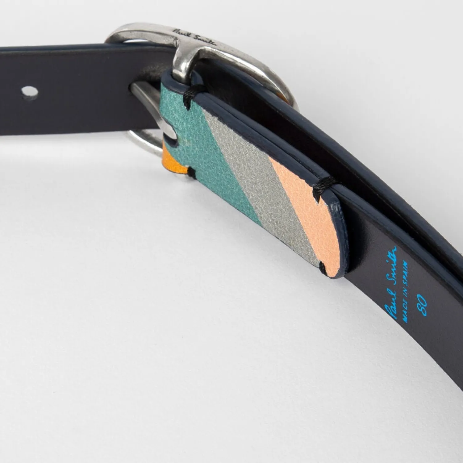 Enriched With The Label’s Signature Multicoloured Design Paul Smith’s Swirl Belt Is Crafted Exclusively From Leather And Is Finished With A Silver-Toned Brass Buckle. It Is Contrasted With Black Leather On The Reverse So You Can Switch Styles To Suit Every Occasion.