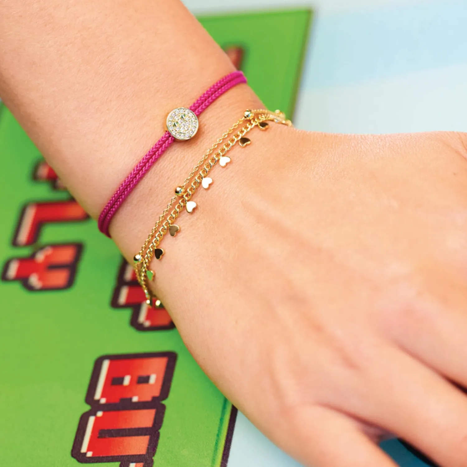 - Pink Cord Gold-Plated Metal Crystals