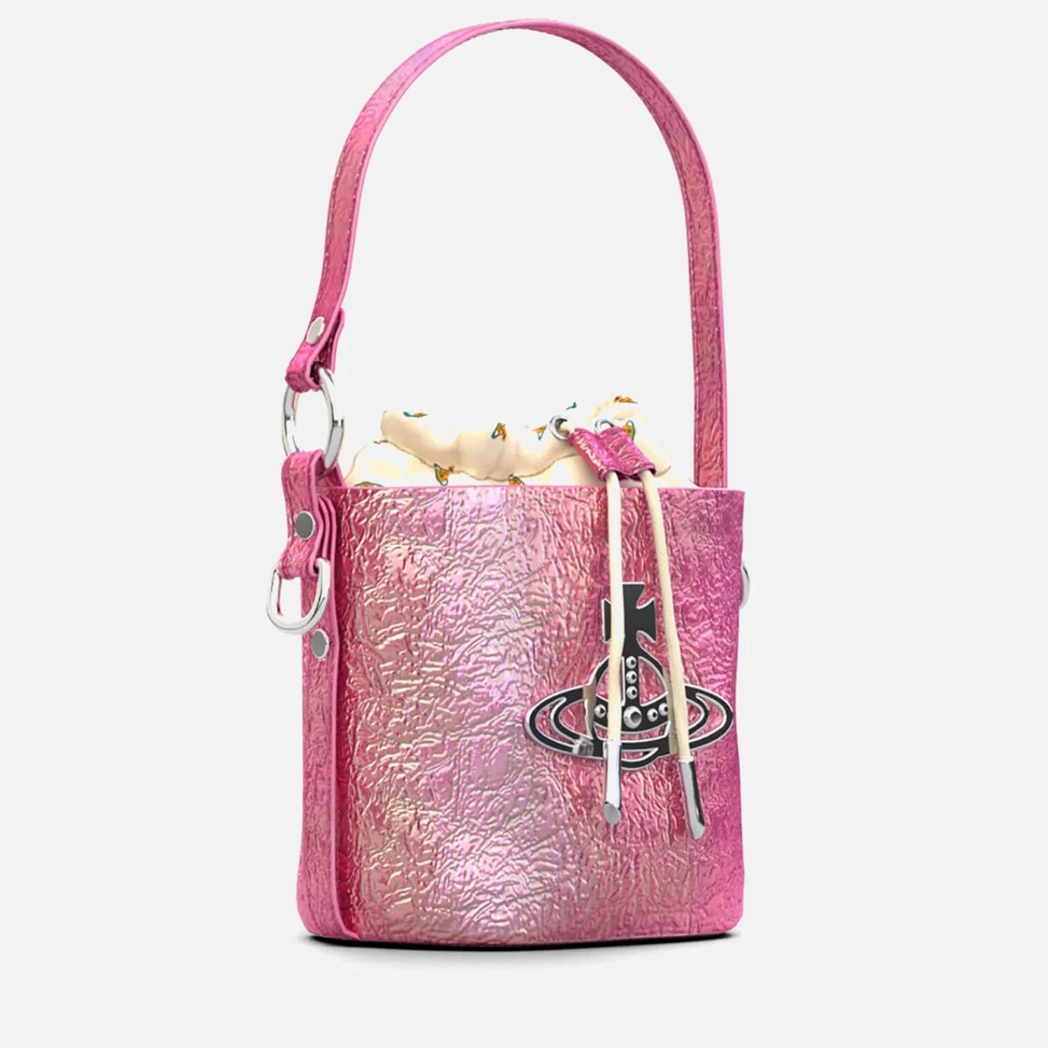 Vivienne Westwood Daisy Bucket BagMetallic Pink Faux LeatherDetachable Crossbody StrapDesigner LogoTop HandleDrawstring …