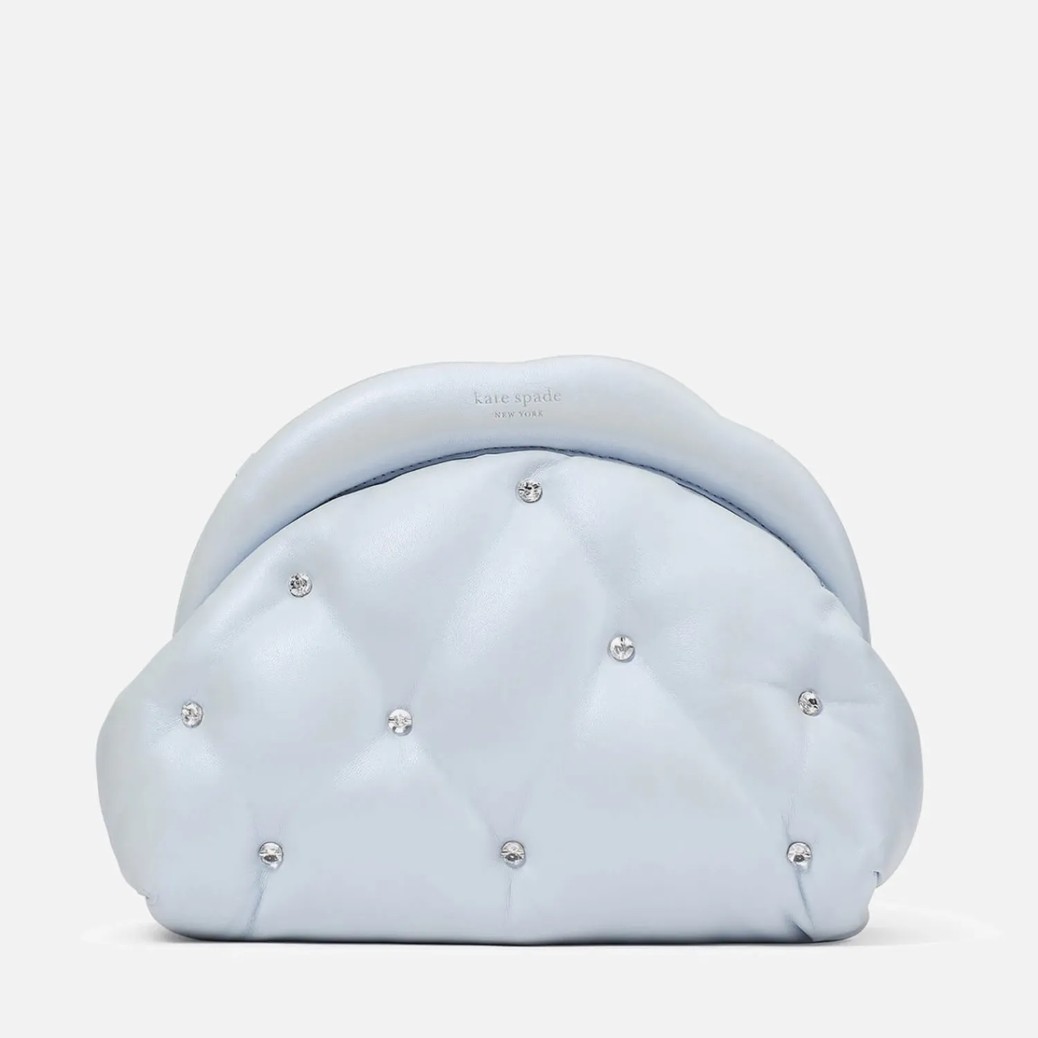 Kate Spade New York Shade Cloud Clutch BagBlue Quilted LeatherDesigner LogoCrystal EmbellishmentsInternal Zipped PocketD…
