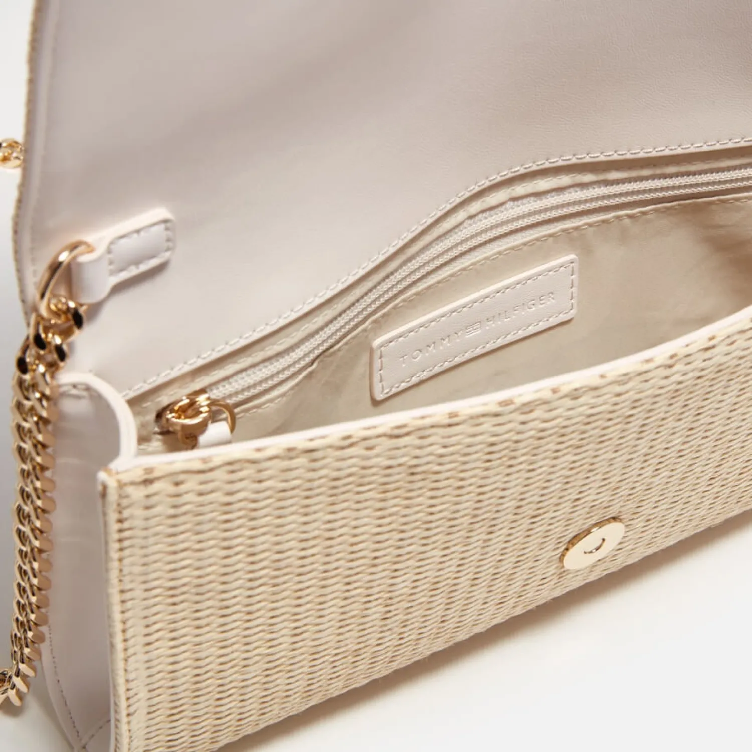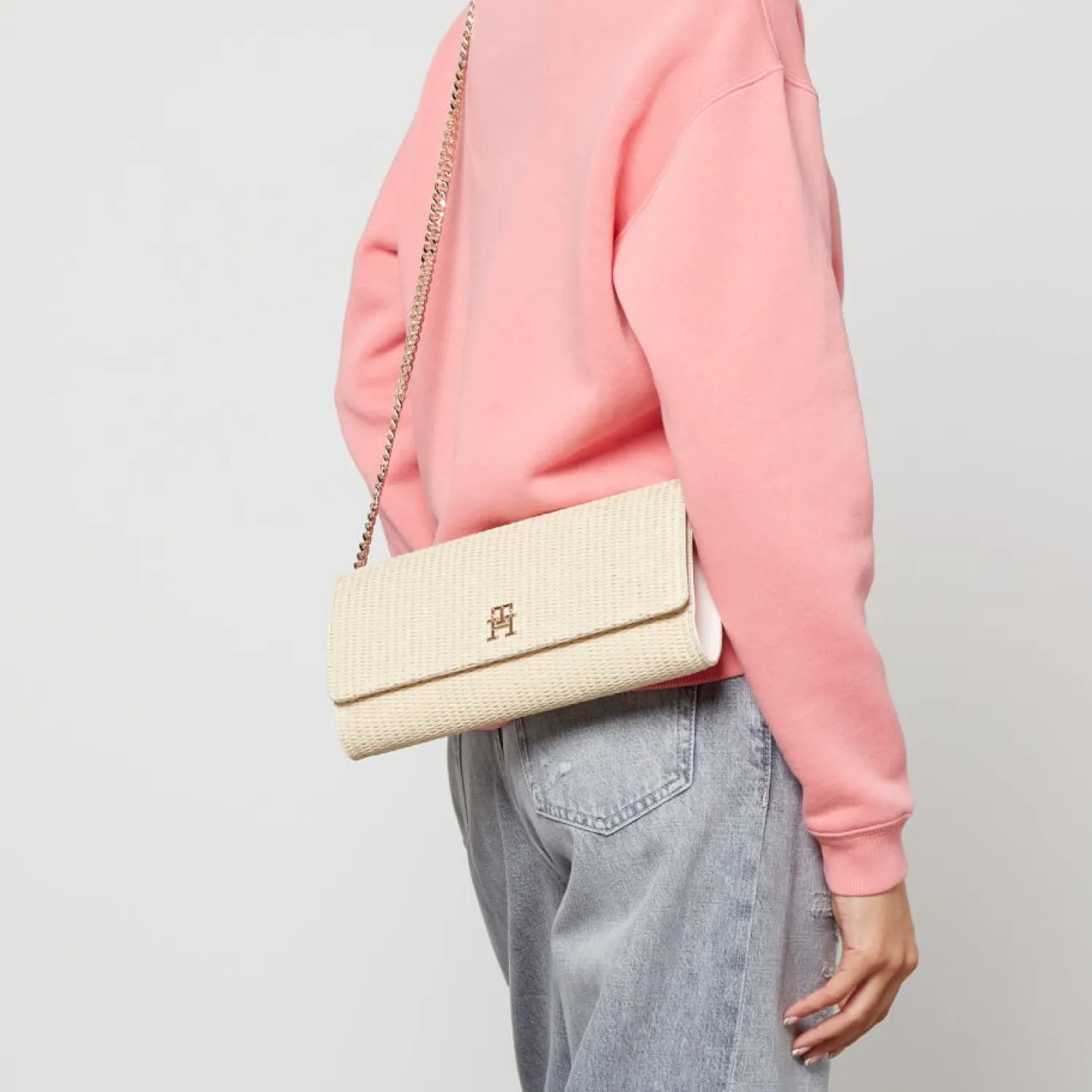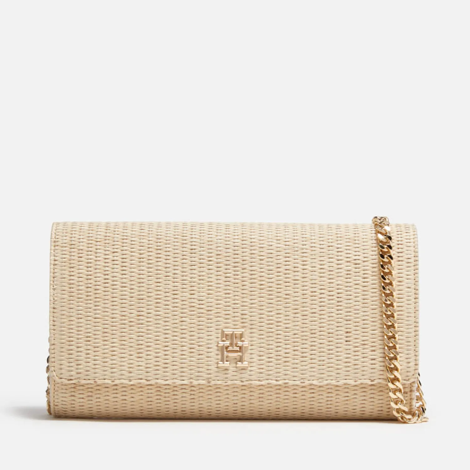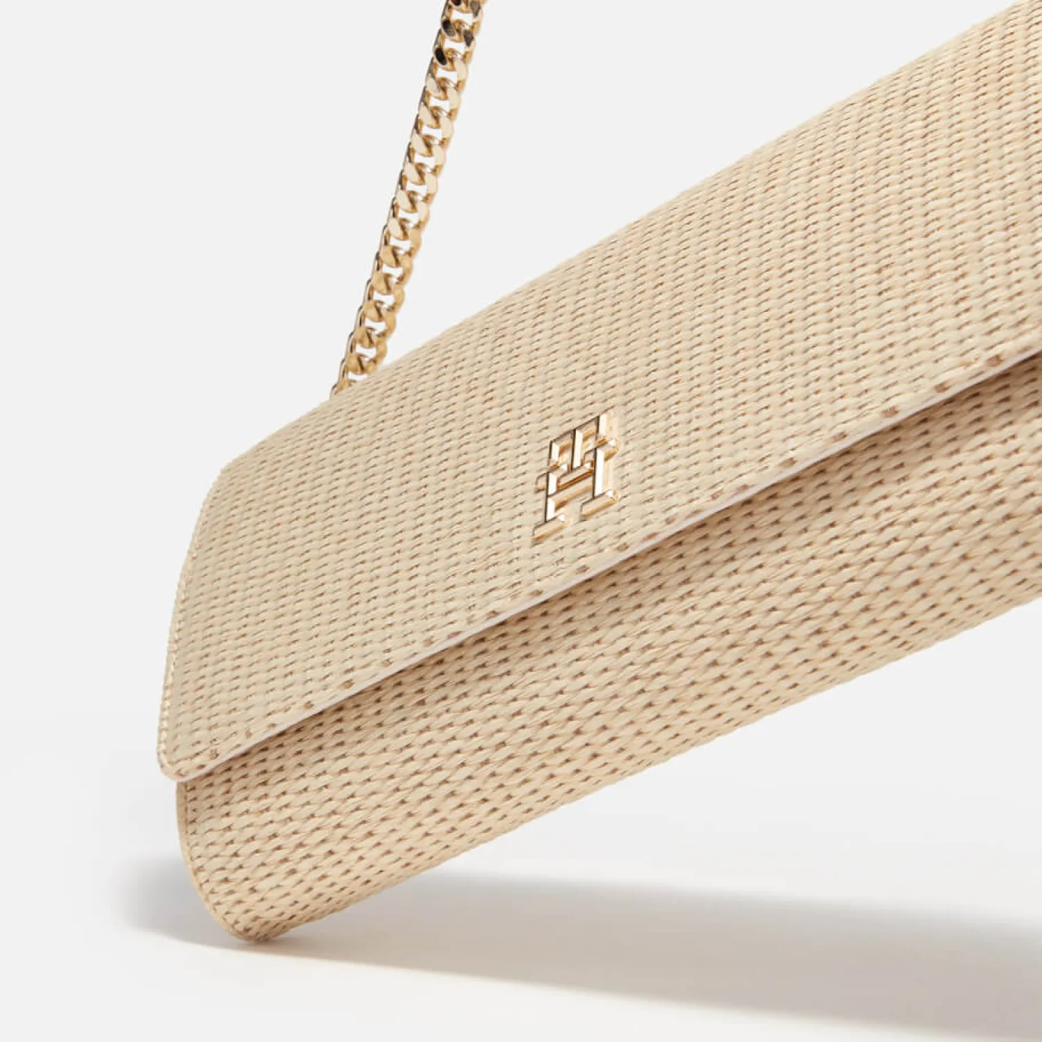Tommy Hilfiger Summer Clutch BagNatural JuteDimensions: H: 14Cm X W: 26Cm X D: 5Cm. Strap Drop: 54Cm