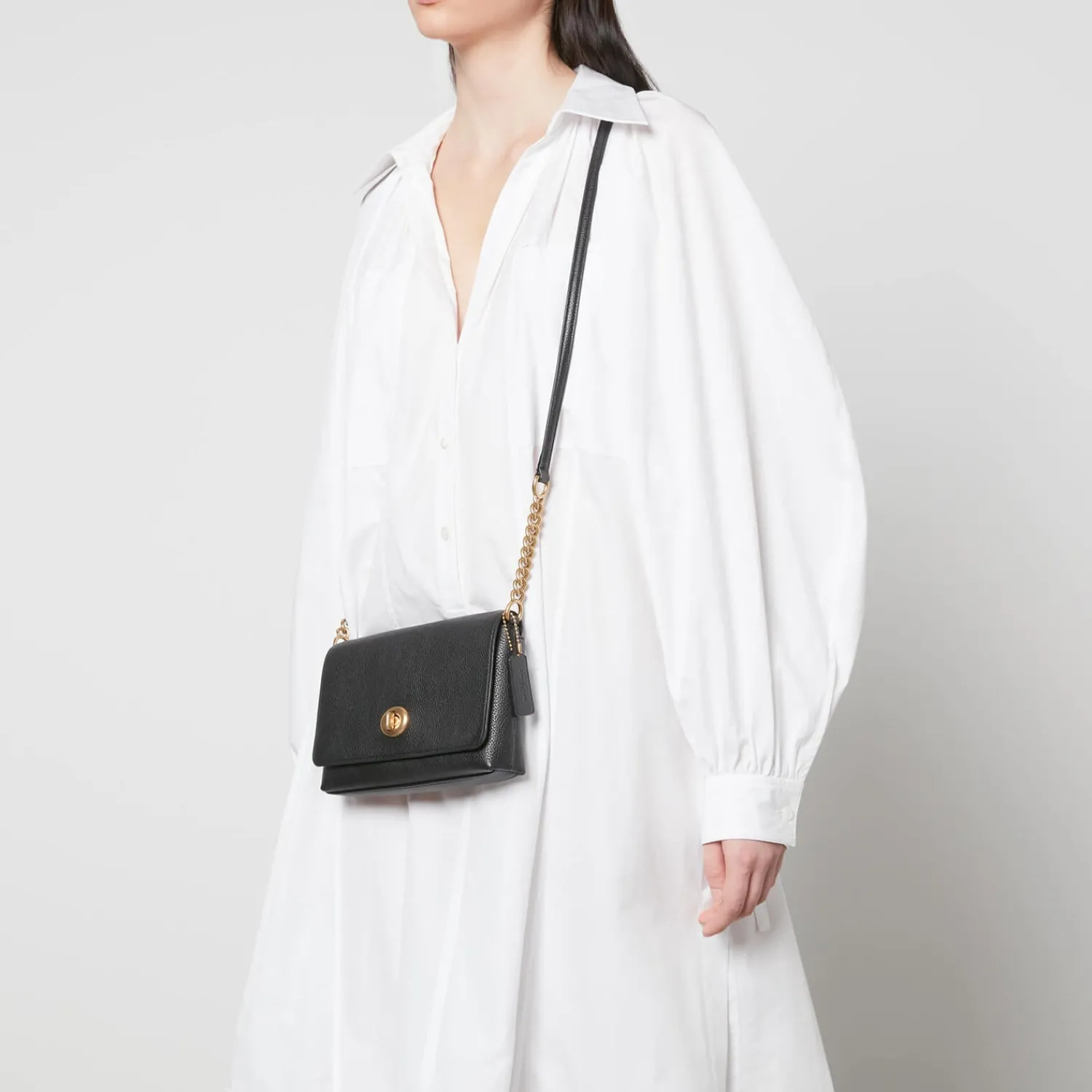 Coach Cross Body Bag In Polished Pebble Leather With A Minimal Structured Silhouette For Storing Essentials. Fastened With A Turnlock Closure On The Flap In Polished Gold-Tone Metal The ‘Crosstown’ Bag Has A Fabric Lined Interior With A Slip Pocket And A Leather Coach Logo Patch.