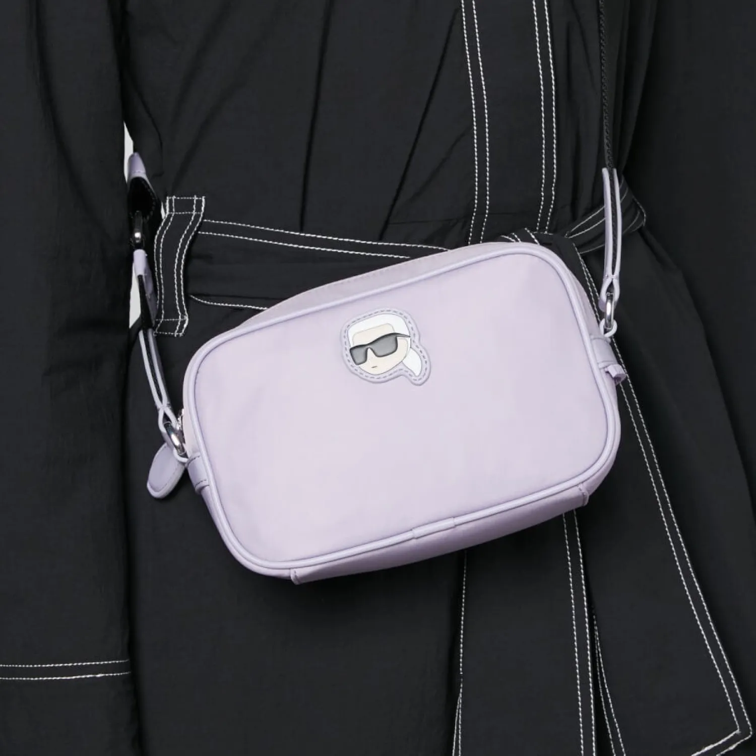 Karl Lagerfeld Shooting Stars Camera BagLilac NylonWebbing Shoulder StrapDesigner Logo BadgeZip Closure