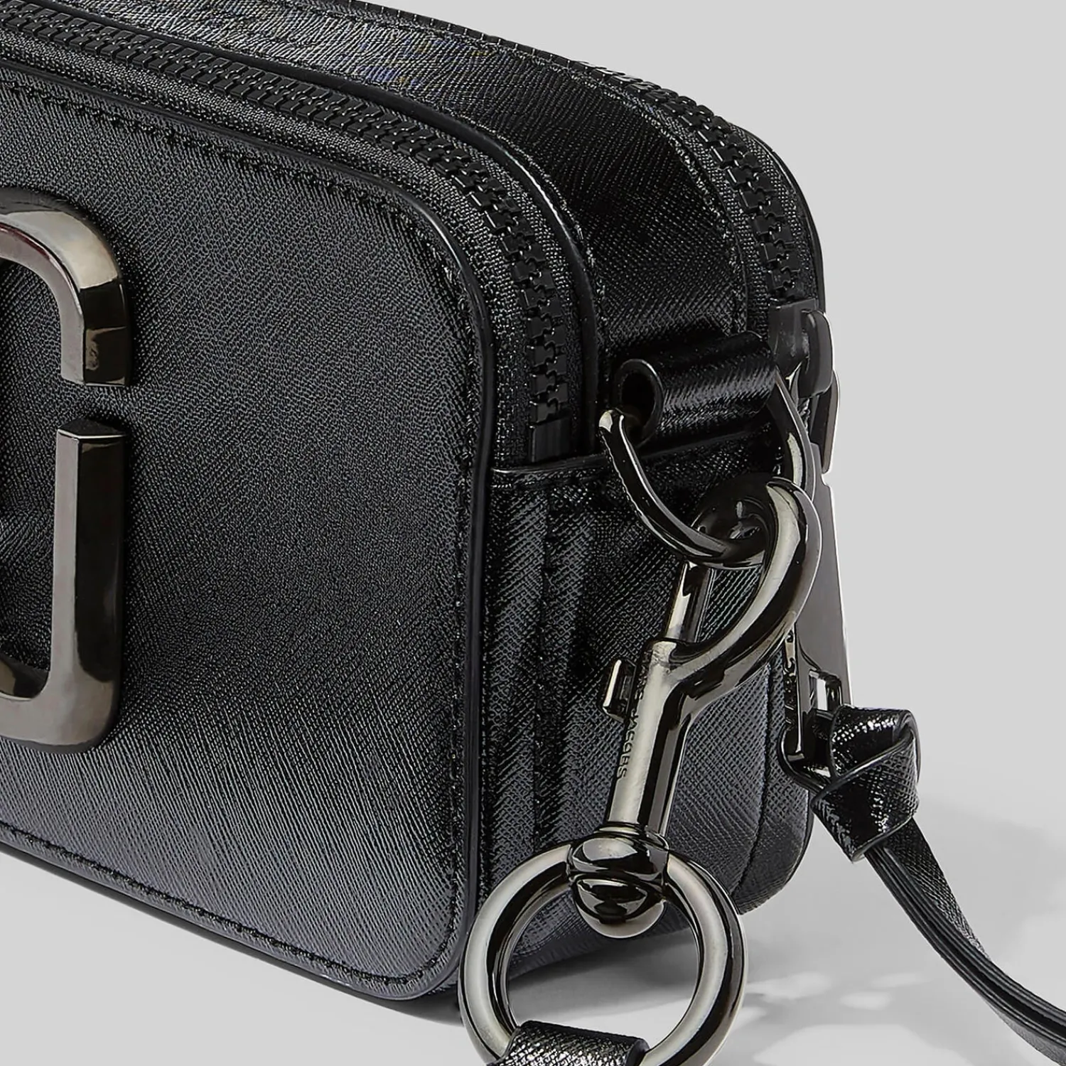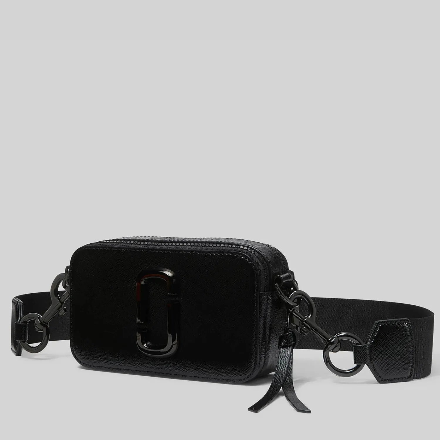 Embrace This Season’S Mini Cross-Body Trend With Marc Jacobs’ Snapshot Dtm Bag. Crafted From Black Saffiano Leather The Structured Camera Silhouette Is Accentuated With Gunmetal-Toned Hardware Including The Signature Double ‘J’ Logo Front And Centre. Engraved Lobster Claw Clasps Attach The Compact Style To A Wide Branded Webbing Strap For Effortless Styling Styling.