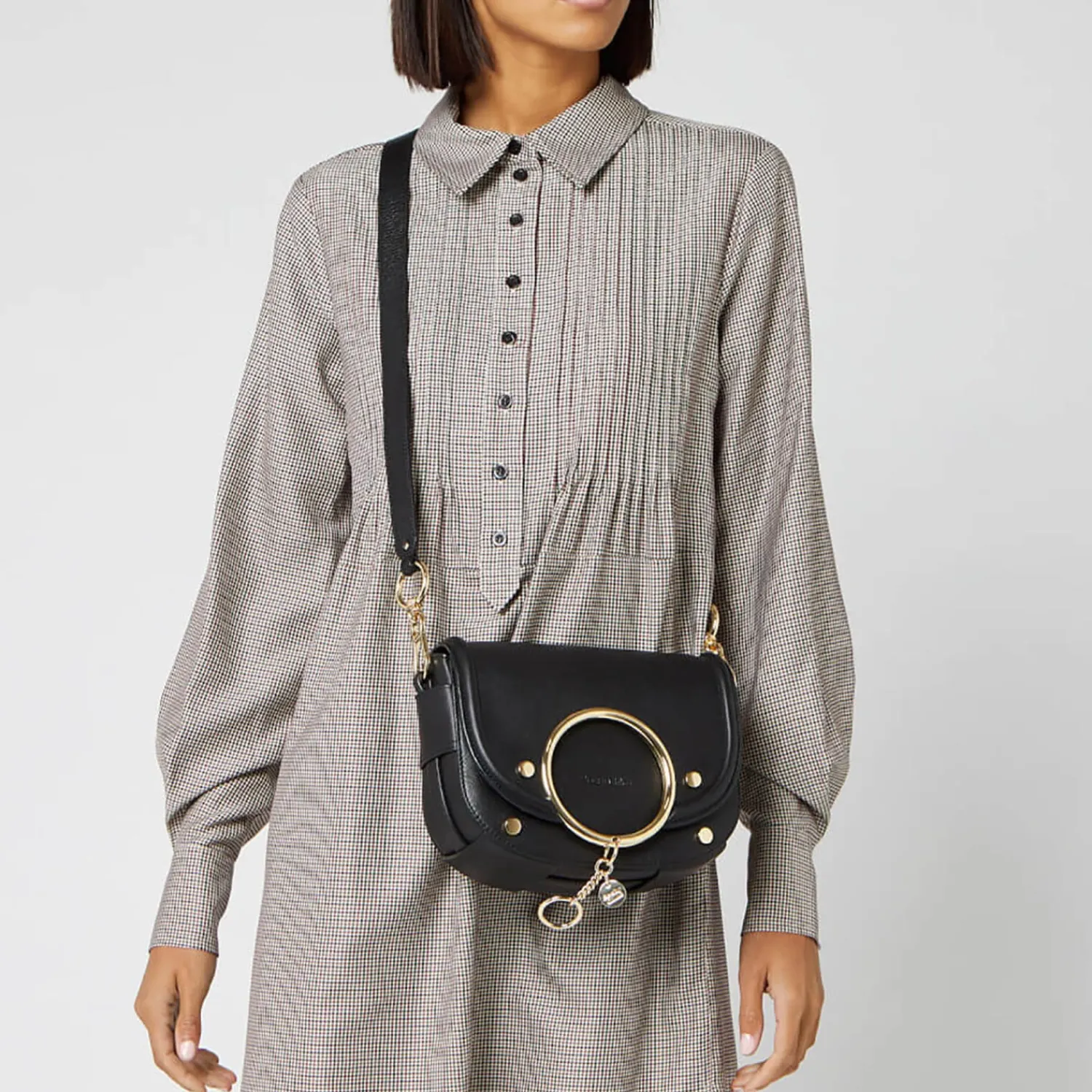 Brown Cross Body Bag From See By Chloe Featuring The Brands Signature Gold-Tone Ring Hardware. Crafted From A Soft Leather With A Classic Saddle Silhouette The Bag Is Accessorised With A Gold-Tone Charm And Flat Gold Studs. The Front Flap Is Embossed With The Brand Logo And Finished With Trapunto Edging And Tonal Stitching For A Premium Finish. The Leather Shoulder Strap Features Gold-Tone Lobster Claw Clasps. Interior Wall Pocket And Leather Branded Tab. Secured With A Snap-Fastening.