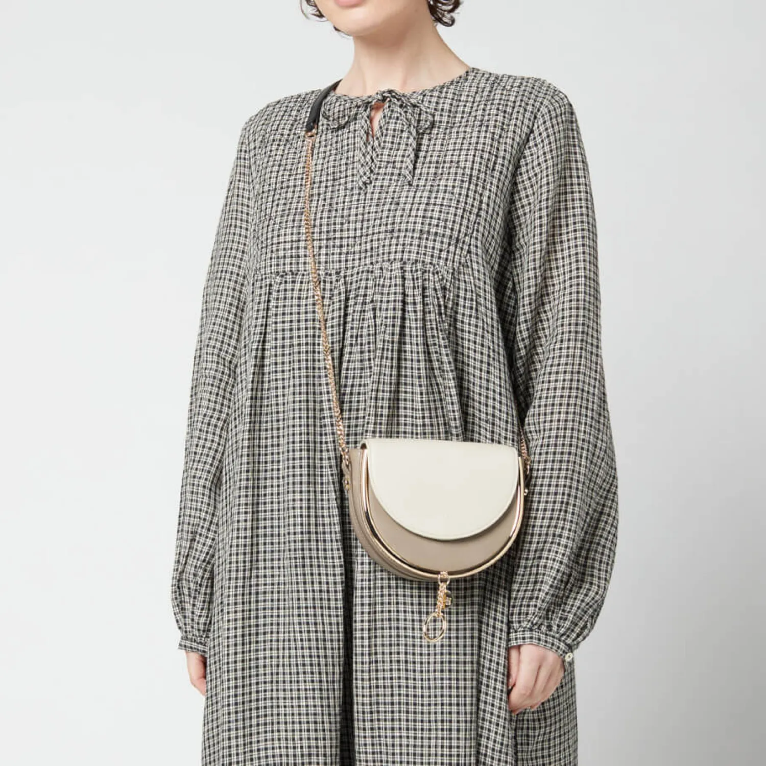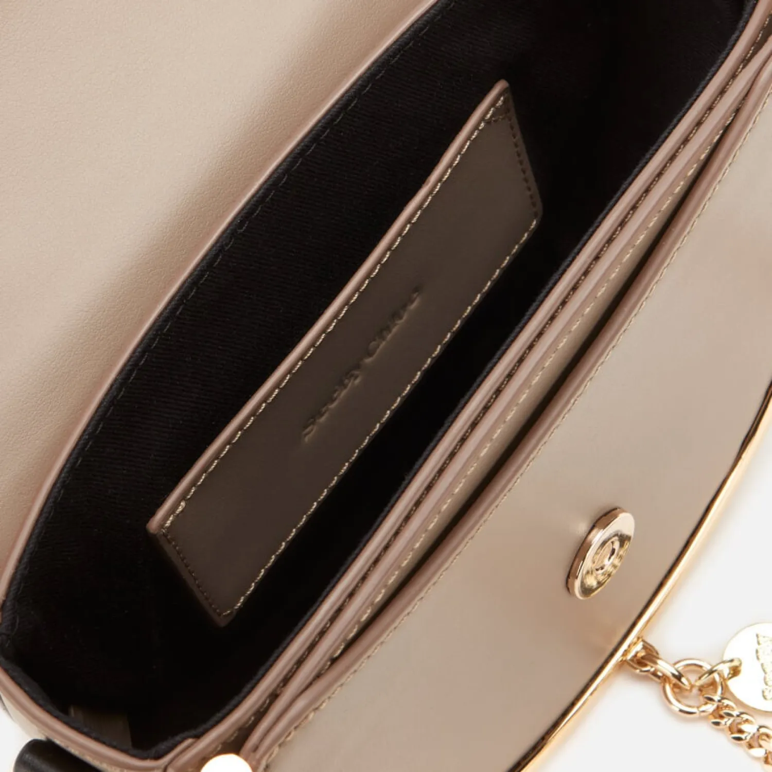 Sporting A Half-Moon Silhouette See By Chloe Presents The ‘Mara’ Shoulder Bag. The Neutral Colour Palette Is Emboldened By Gold-Tone Hardware Framing The Body With A Shining Edge And Dangling O-Ring Charm. Secured With A Concealed Mag-Dot Fastening The Front Clap Closure Opens To Reveal A Grosgrain Lined Interior Finished With An Embossed Branding Plaque. Crafted From Textured Leather The Bag Is Held On A Curb Chain Crossbody Strap Trimmed With Tonal Leather To Sit Comfortably On The Shoulder.