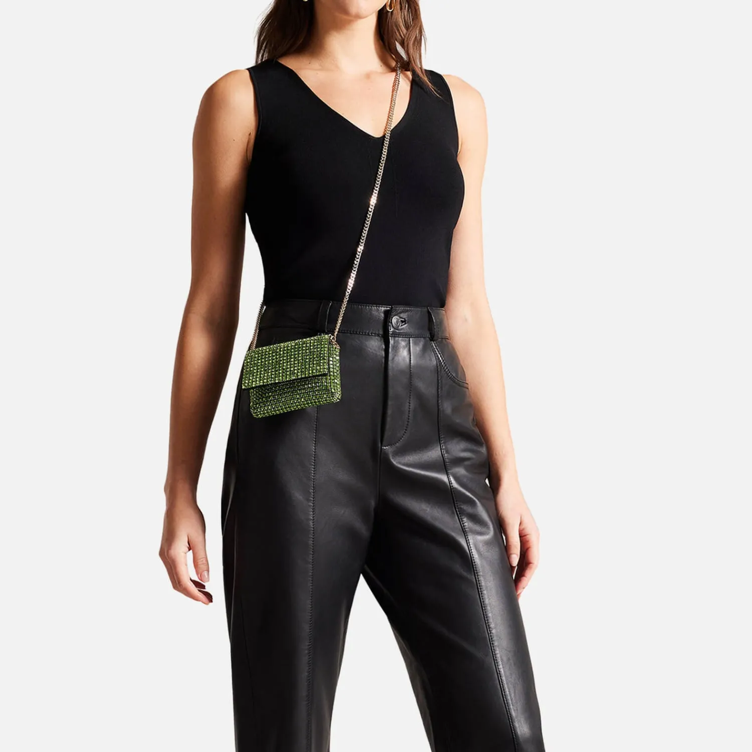 Ted Baker Crystal Cross-Body BagLight Green DiamantesGold-Toned Chain Strap