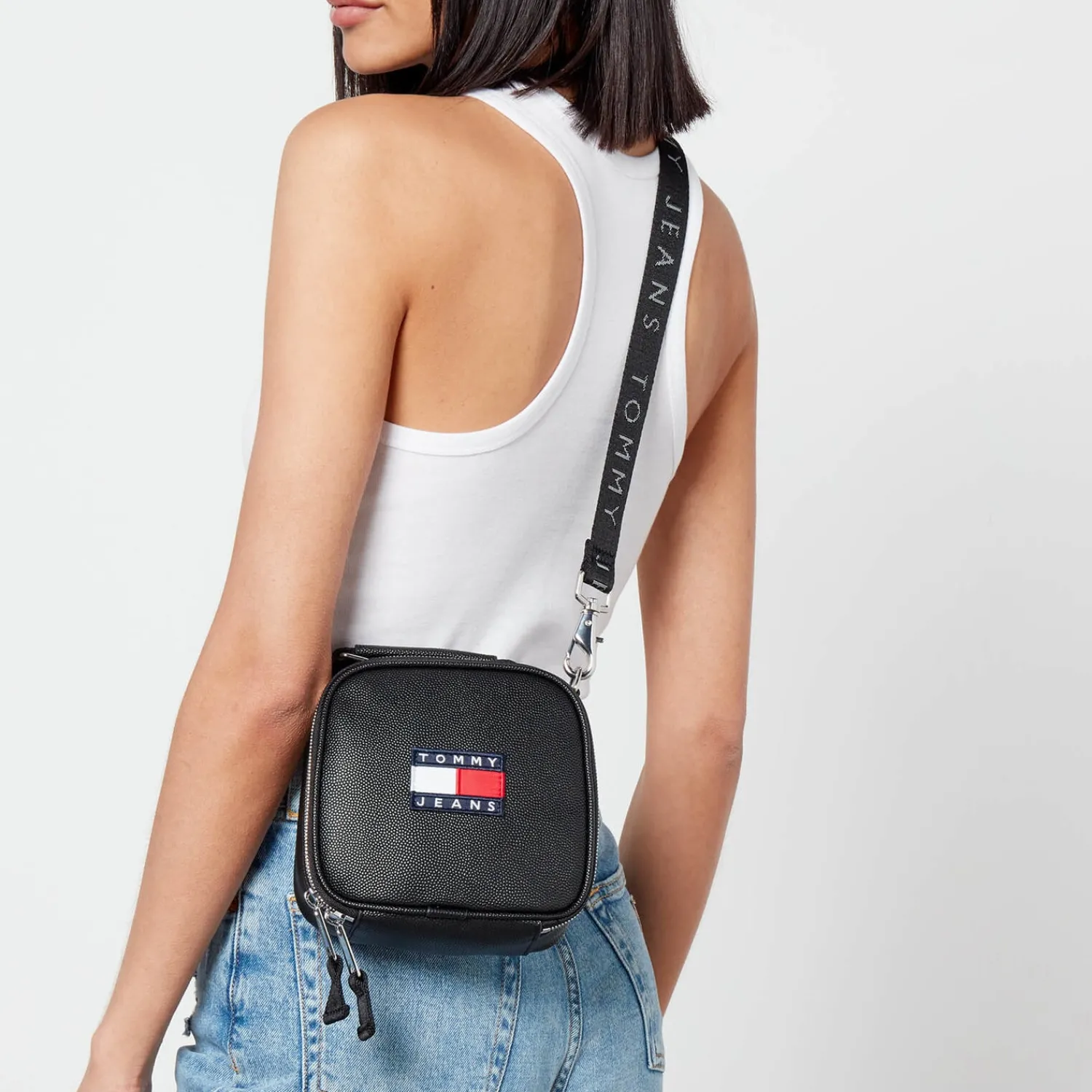 Tommy Jeans Heritage Crossbody BagBlack Pebbled Faux LeatherDesigner PatchDetachable Adjustable Shoulder StrapInterior Z…