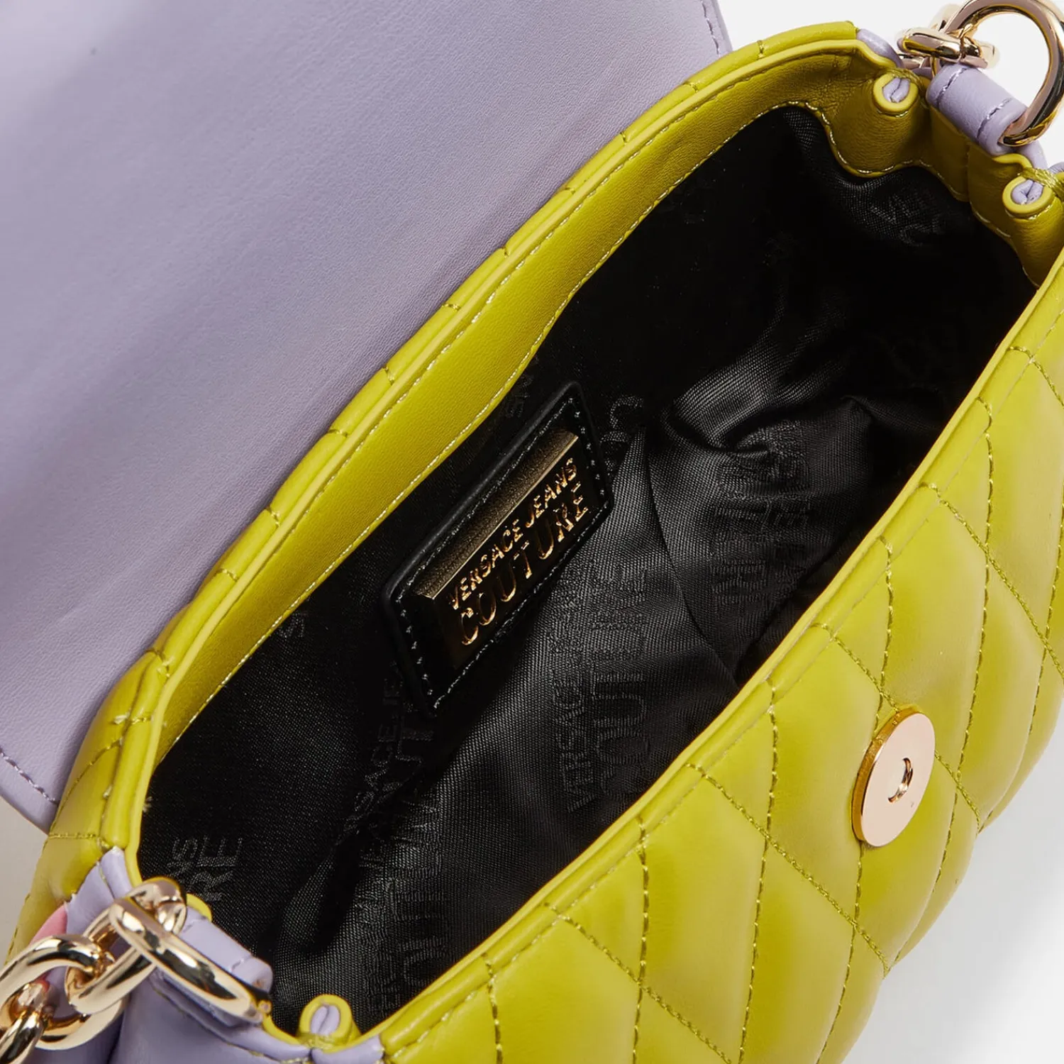 Versace Jeans Couture Cross Body BagMulticoloured LeatherChain StrapDesigner PlaqueGold-Tone And Pink HardwareFully Line…