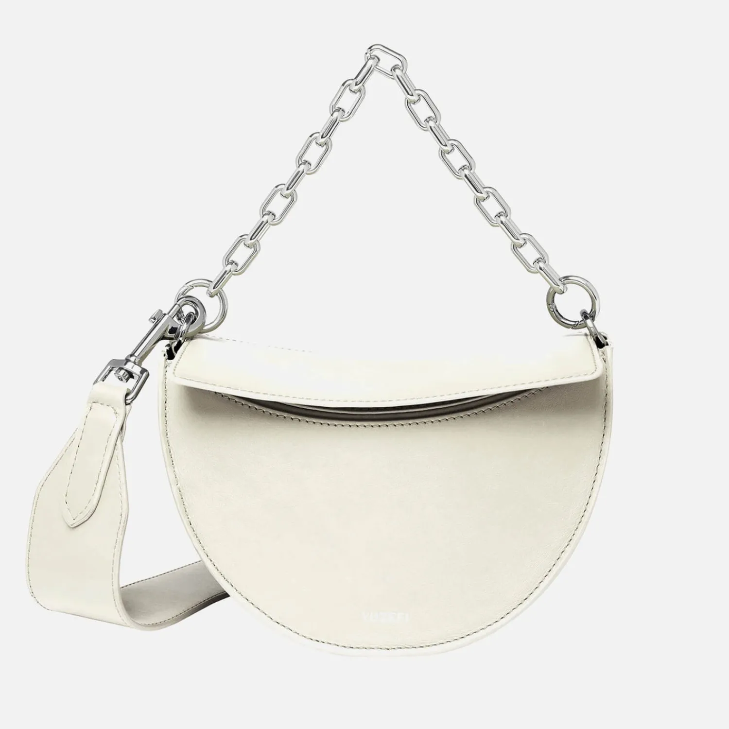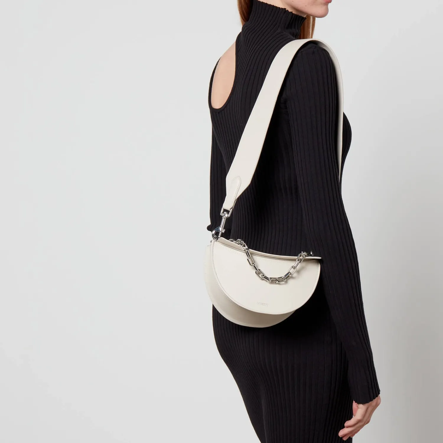 Yuzefi’s Experimental Take On Design Comes To Light In The Doris Bag. Fashioned Into A Crescent Silhouette The Doris Features An Ergonomic Design At The Base That Easily Fits The Essentials. A Silver-Tone Chain Tops The Design For An Elevated Day-To-Night Sign-Off.