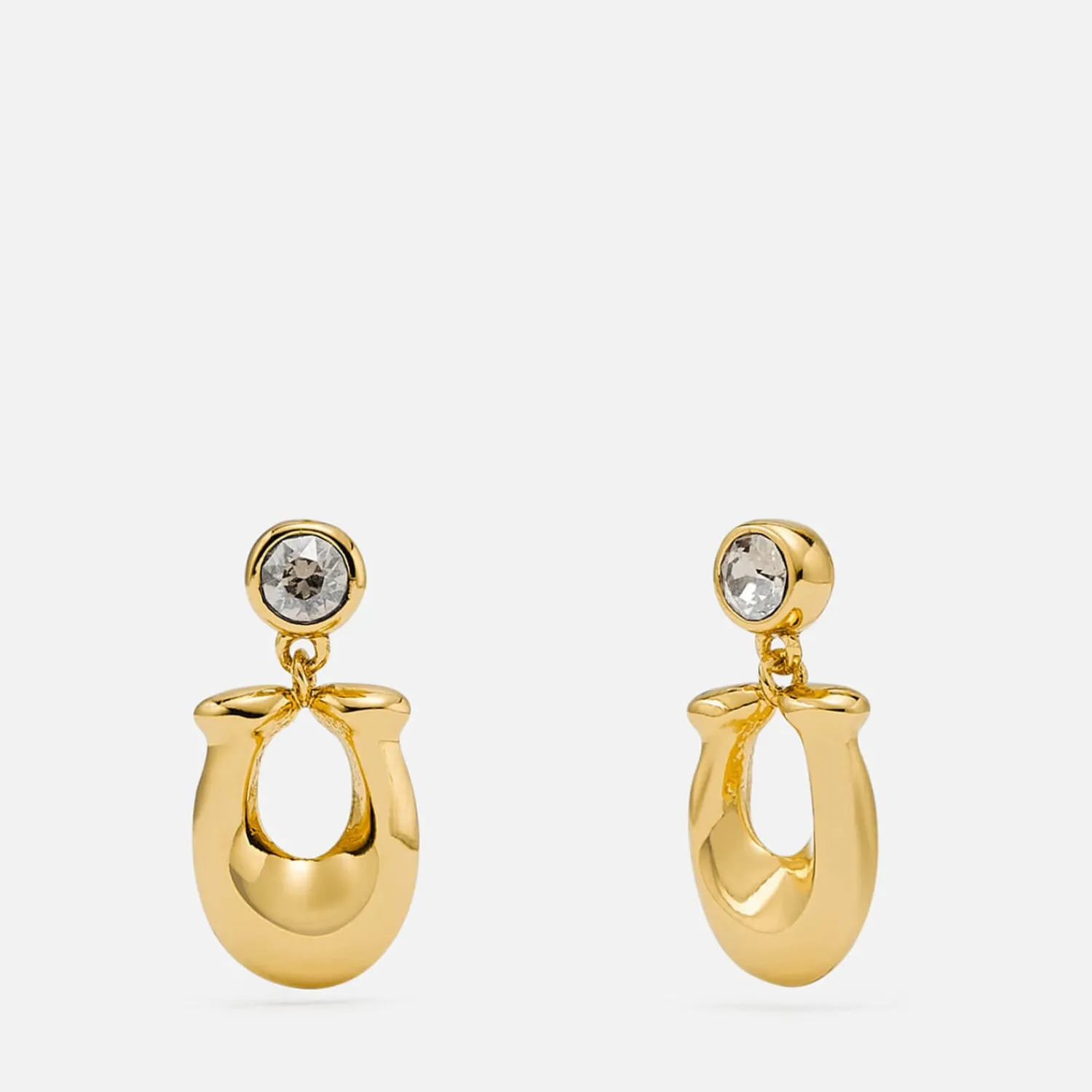 The C Motif On Coach’s Earrings Is Placed On Its Side To Mimic A Lucky Horseshoe. They’Re Cast From Gleaming Gold-Plated Brass And Topped With A Crystal For Extra Sparkle.