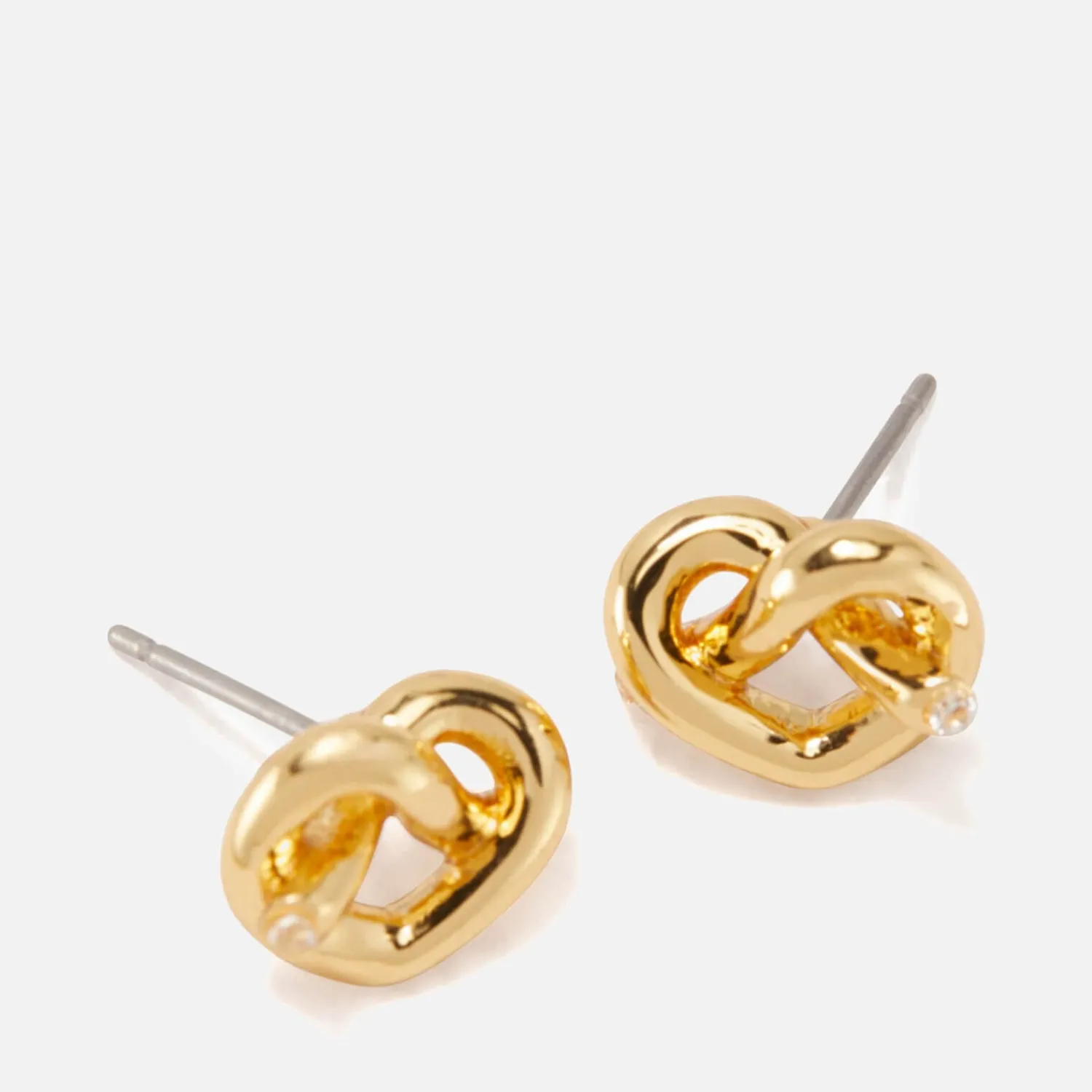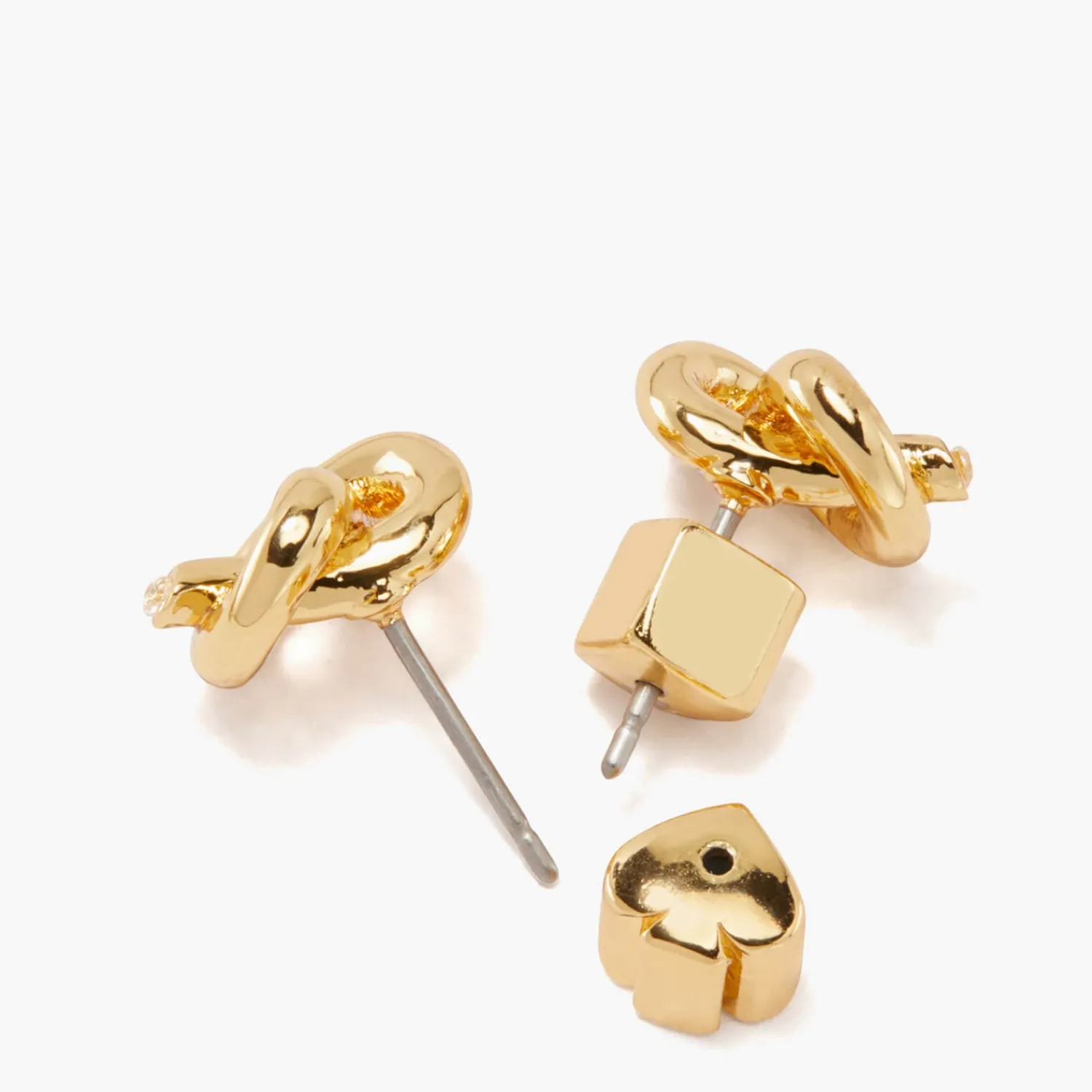 Kate Spade New York Has Updated Its Best-Selling Sailor Knot With A Love Me Knot Design. The Knotted Pendant Is A Subtle Heart-Shape And Handcrafted From Gold-Plated Brass. Signature Spade-Shaped Backs And Sparkling Cubic Zirconia Crystals Add The Finishing Touches.