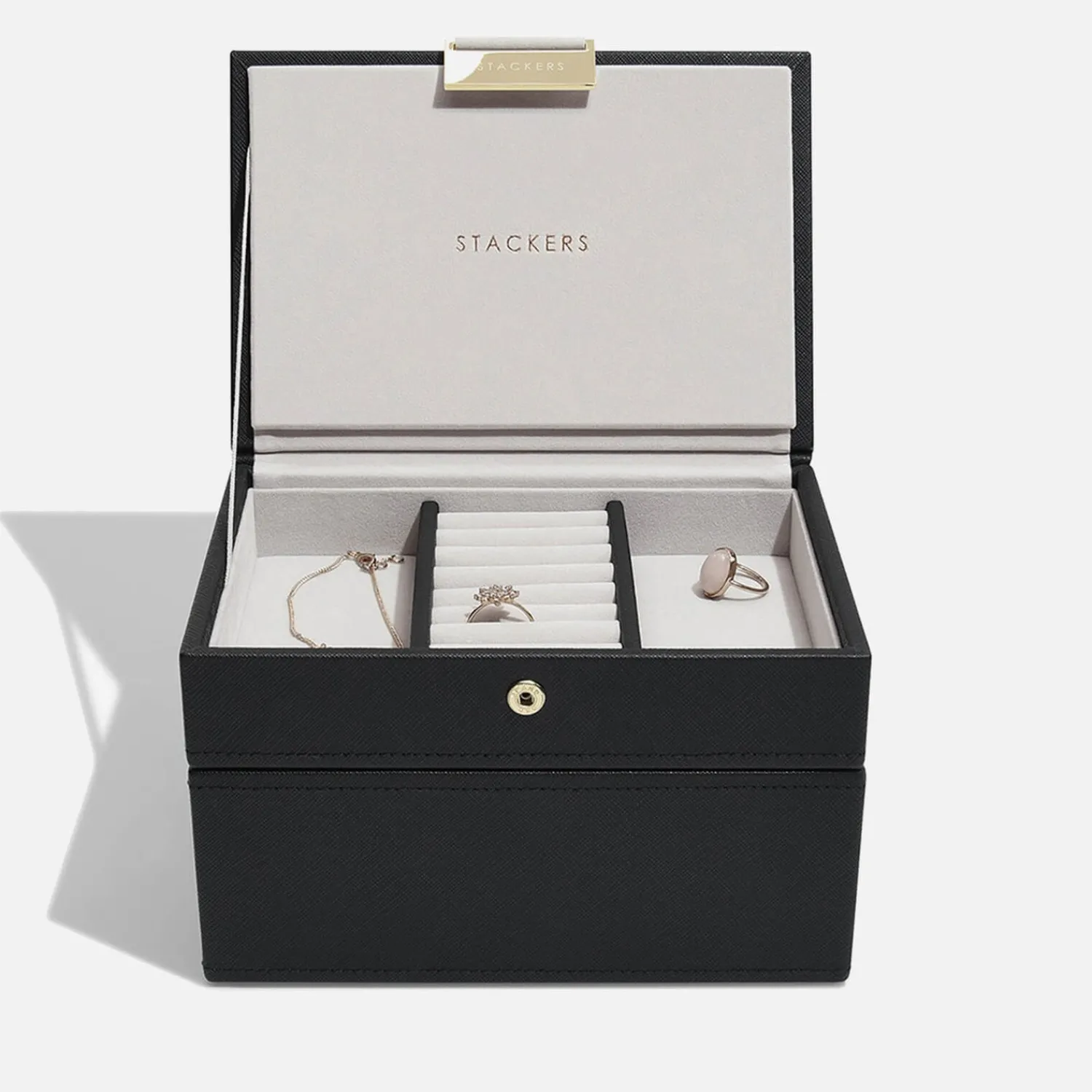 Our Mini Jewellery Box Is The Prefect Size For Your Everyday Jewellery Or Those At The Beginning Of Their Jewellery Collection. A Deserving Home For Your Favourites The Jewellery Box Lid Has Versatile Storage For Your Rings Earrings And Necklaces And The Watch/Accessory Layer Is Ideal For Holding A Ring Roll Or Watch Pad Or All Those Sentimental Jewellery Boxes We All Like To Keep Hold Of. Keep Your Ever-Expanding Jewellery Collection Tangle-Free And Beautifully Organised. The Mini Set Includes They Jewellery Box Lid And The Watch/Accessories Layer.