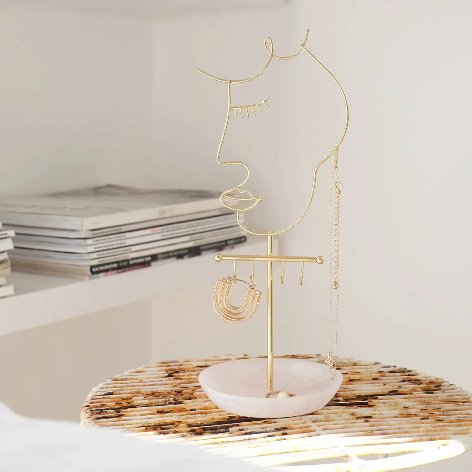 Keep Your Favourite Jewellery On Display With This Cute Pink Quartz And Rose Gold ‘Face’ Jewellery Stand. Featuring 5 Hooks Perfect For Holding Rings Necklaces Or Bracelets And Additional Storage On The Base For Stud Earrings Or Any Other Small Accessories That Need A Home.