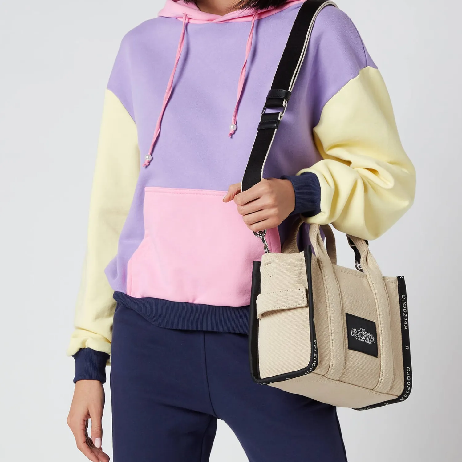 Marc Jacobs’ Essential Tote Is Now Available In A Mini Size. Crafted From Jacquard Material The Bag Boasts A Sturdy Yet Soft Silhouette Decorated With A Signature Branding Embroidered On The Front. A Zip-Top Closure Reveals The Lined Interior Detailed With A Trademark Branding Plaque. Carried By The Twin Handles Or Removable Webbing Strap The Bag Can Be Worn On The Shoulder Across The Body Or Simply Carried In The Hand.