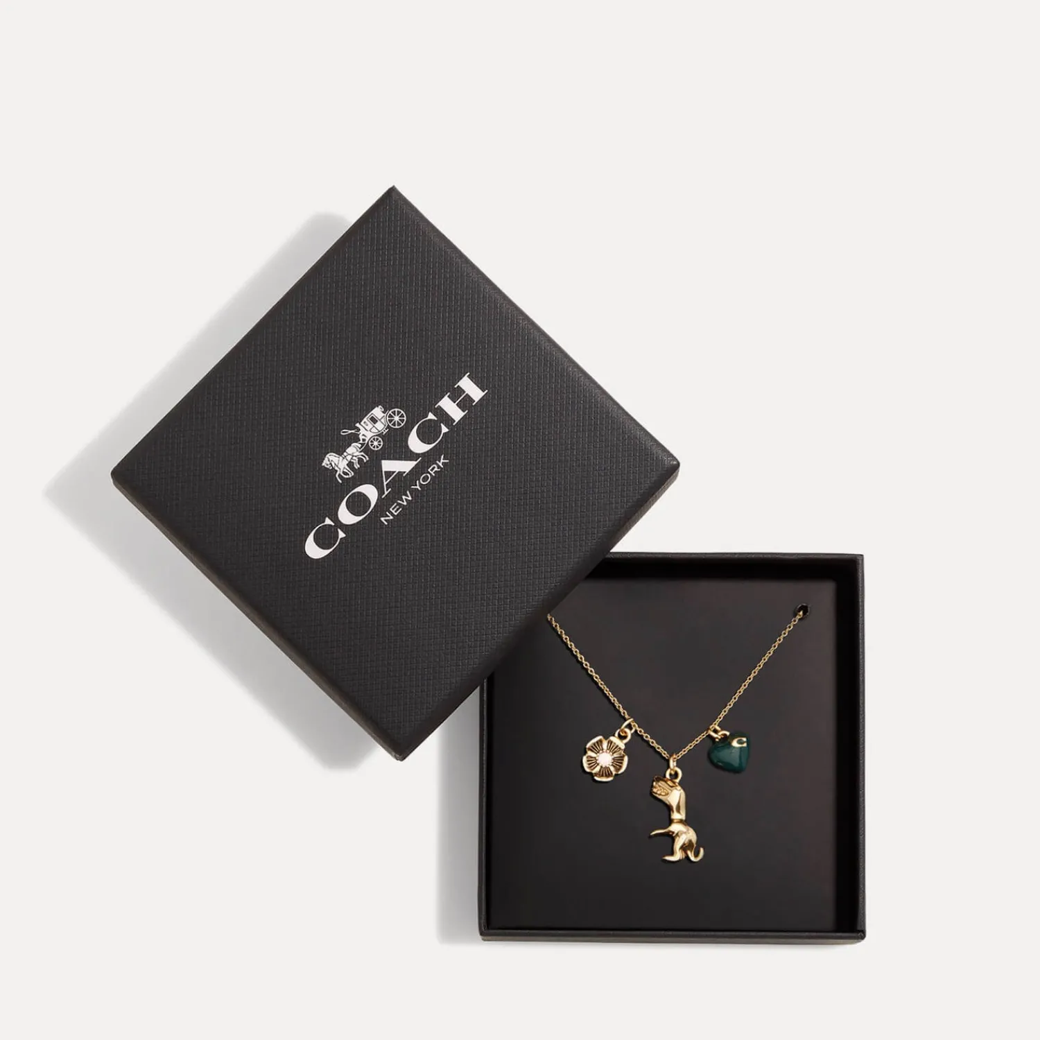 Necklaces*Coach Women’s Rexy Heart Charm Pendant Necklace – Gold/Green