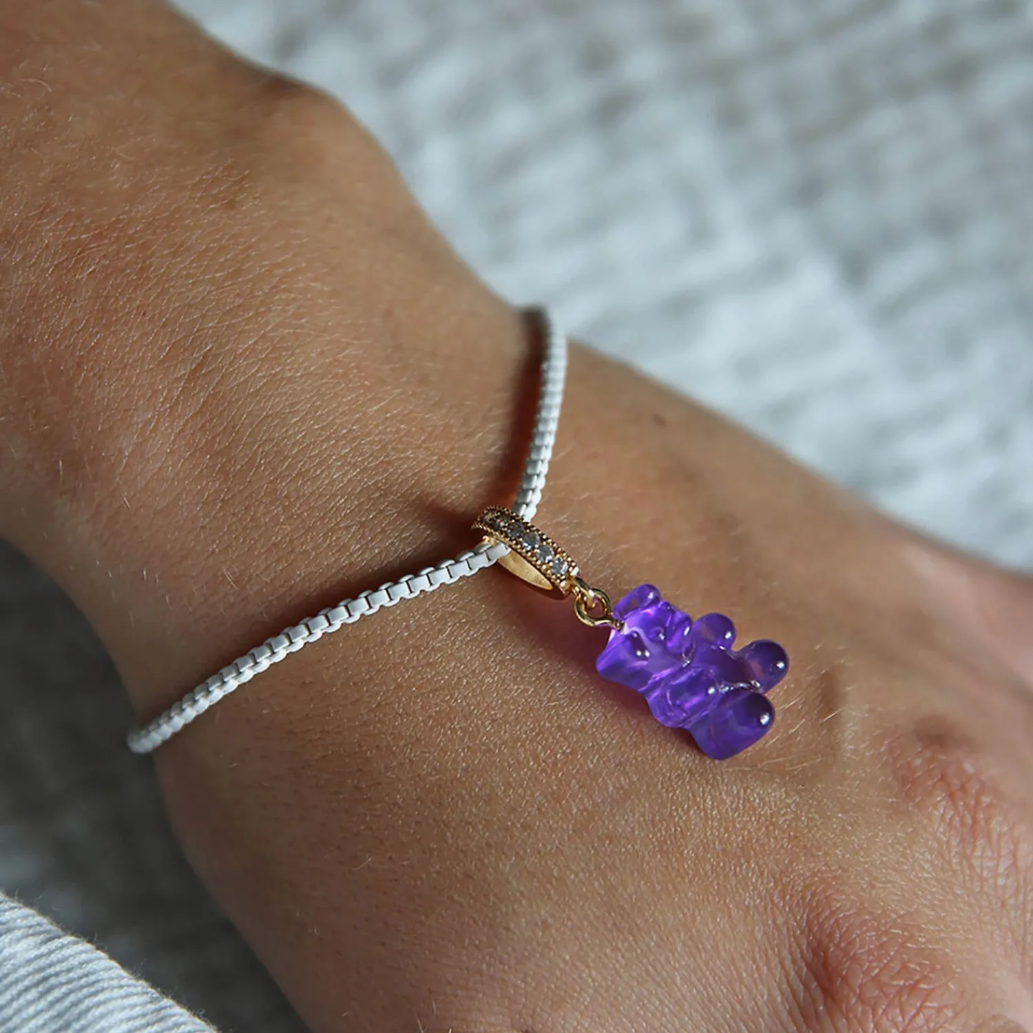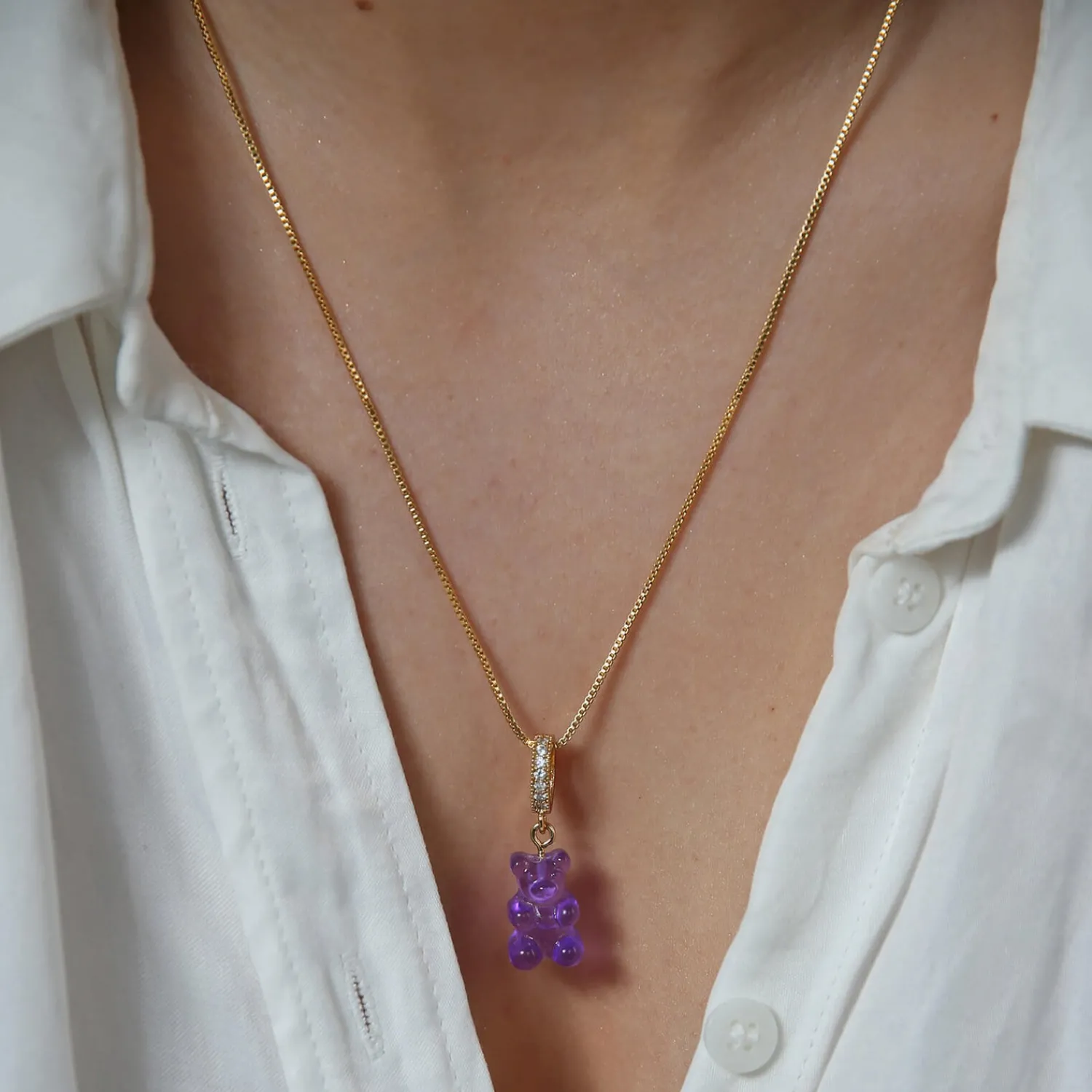 The Nostalgia Bear Pave Pendant Is Brought To Us By Oslo-Based Jewellery Brand Crystal Haze. Reminiscent Of Times Gone By This 18-Karat Gold-Plated Piece Features A Purple Resin Gummy Bear Suspended From A Cubic Zirconia-Embellished Connector. Mix And Match With Necklace And Bracelet Chains Or Hoops For A Custom ‘90S-Infused Accessory.