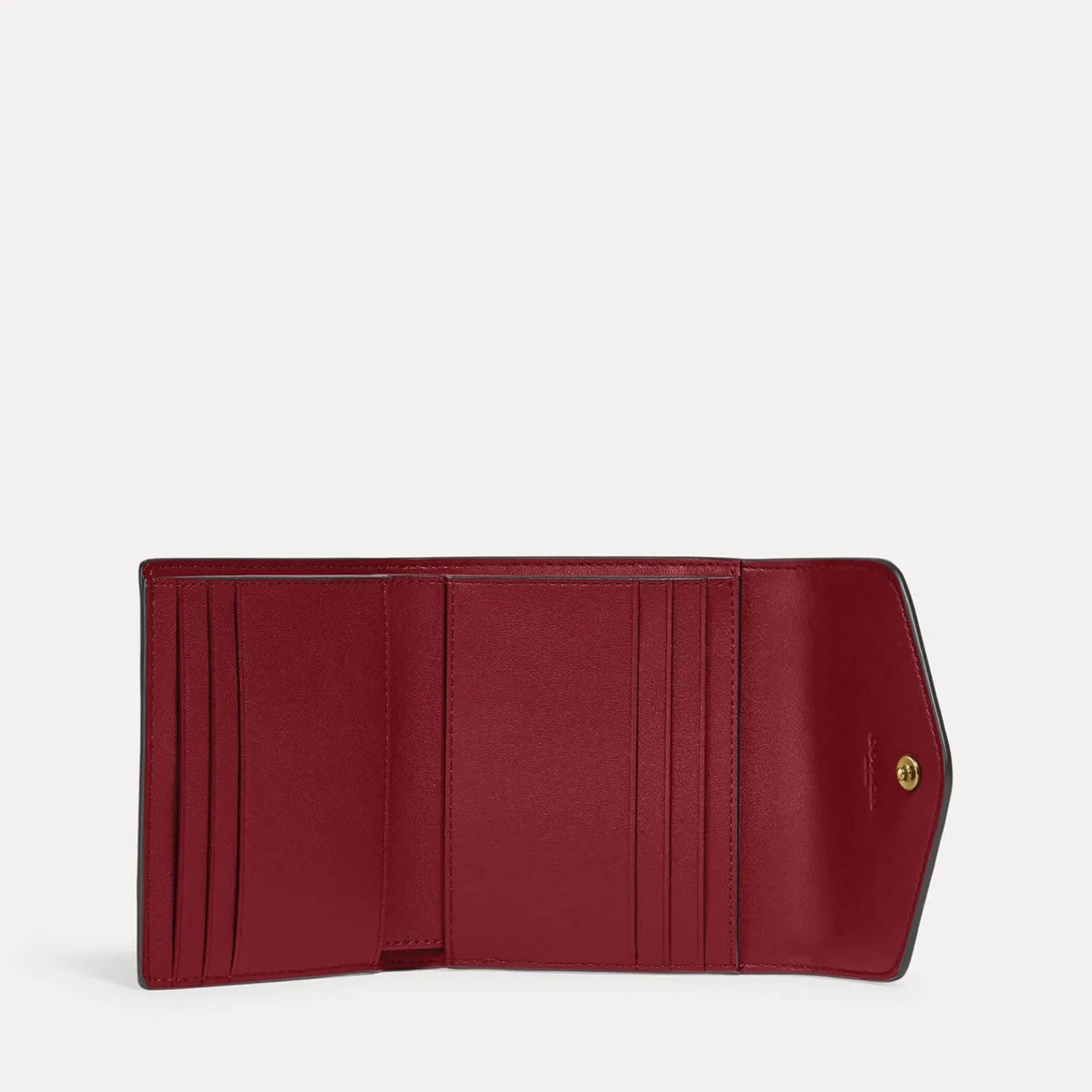Coach WalletCherry LeatherExterior Coin PocketLogo PlaqueContrast StitchingSeven Interior Card SlotsInterior Bill Compar…