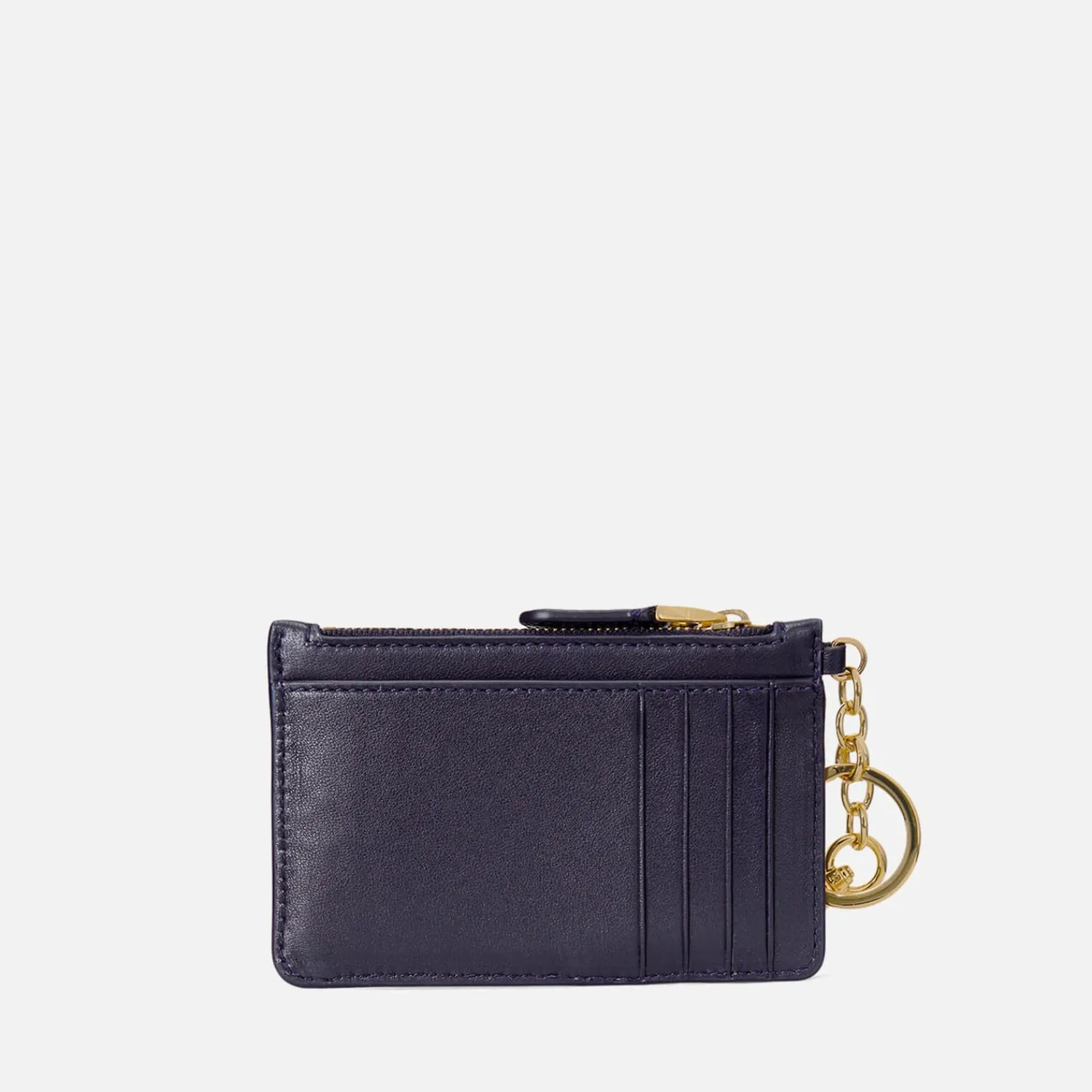 Lauren Ralph Lauren CardholderStorm Blue LeatherKey FobDesigner PlaqueGold-Tone PlaqueZip Closure