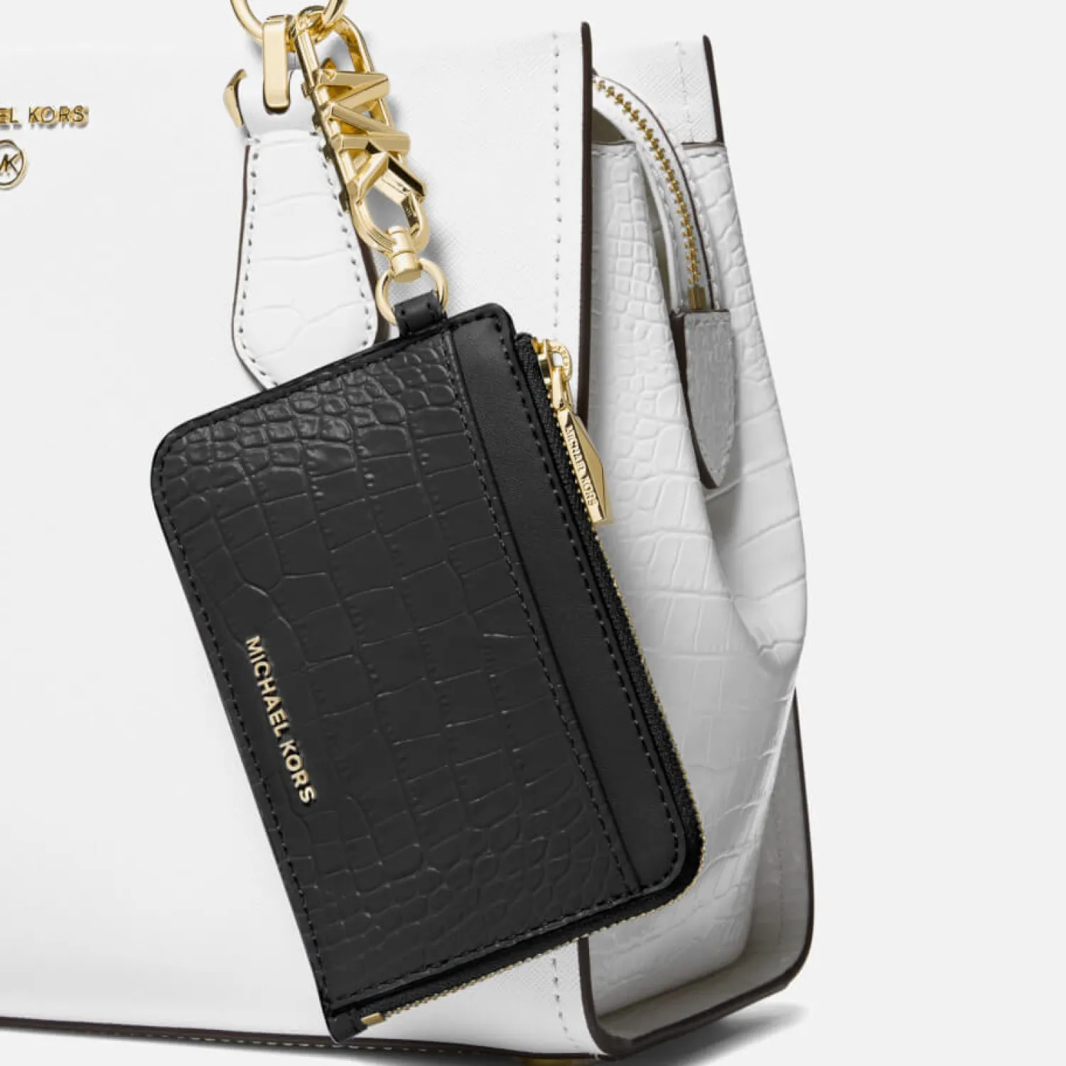 Michael Michael Kors Empire Conversible CardholderBlack Crocodile-Effect LeatherDesigner LogoDesigner Tag Gold-Tone Ha…