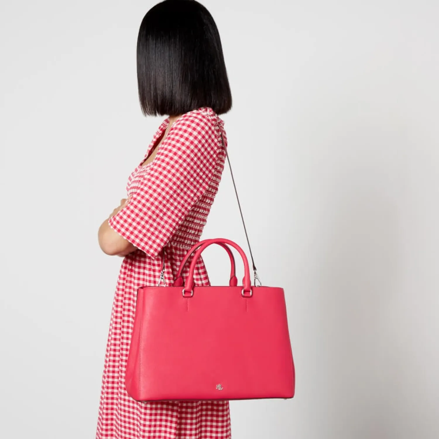 Lauren Ralph Lauren Hanna 37 Large Satchel BagPink LeatherTwo Top HandlesRemovable And Adjustable Crossbody StrapBranded…