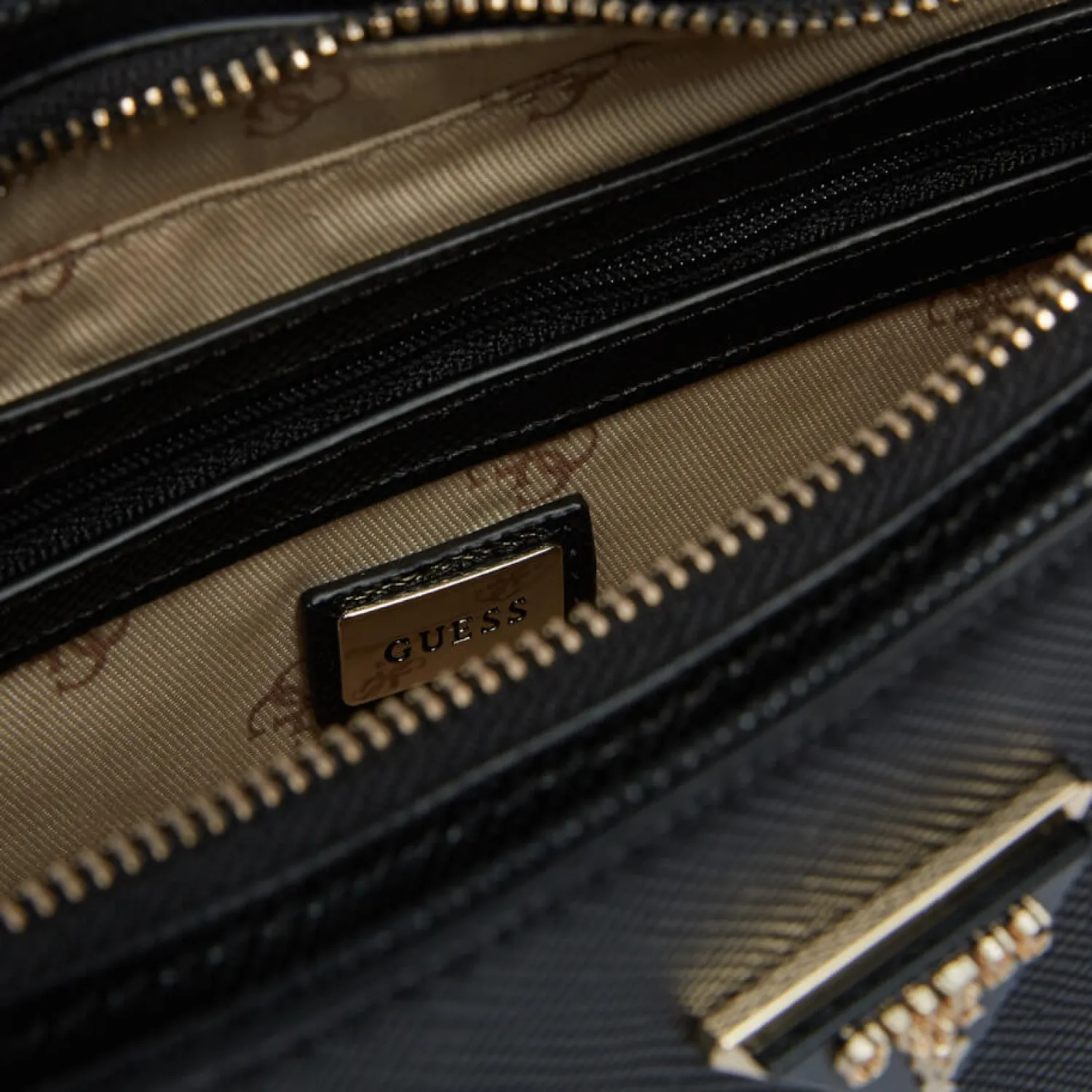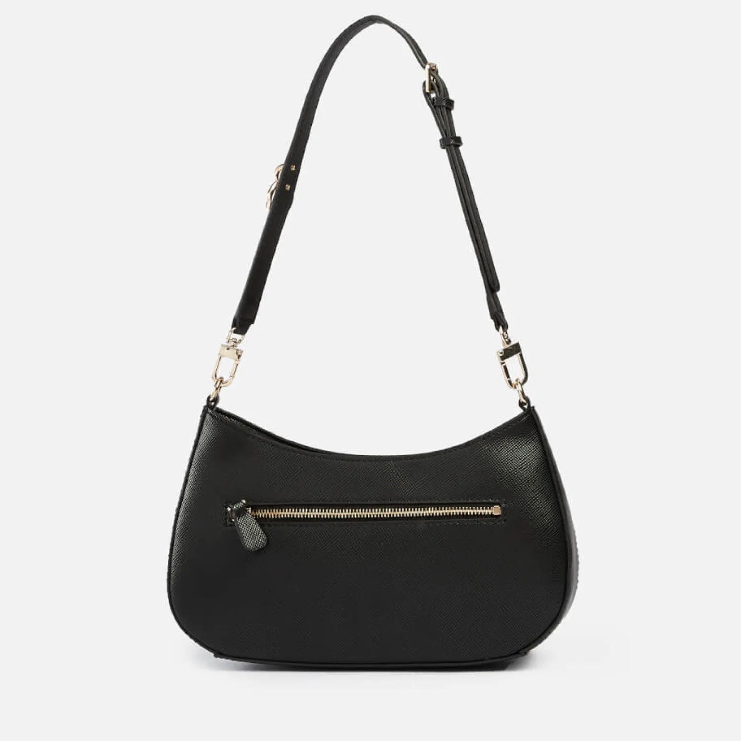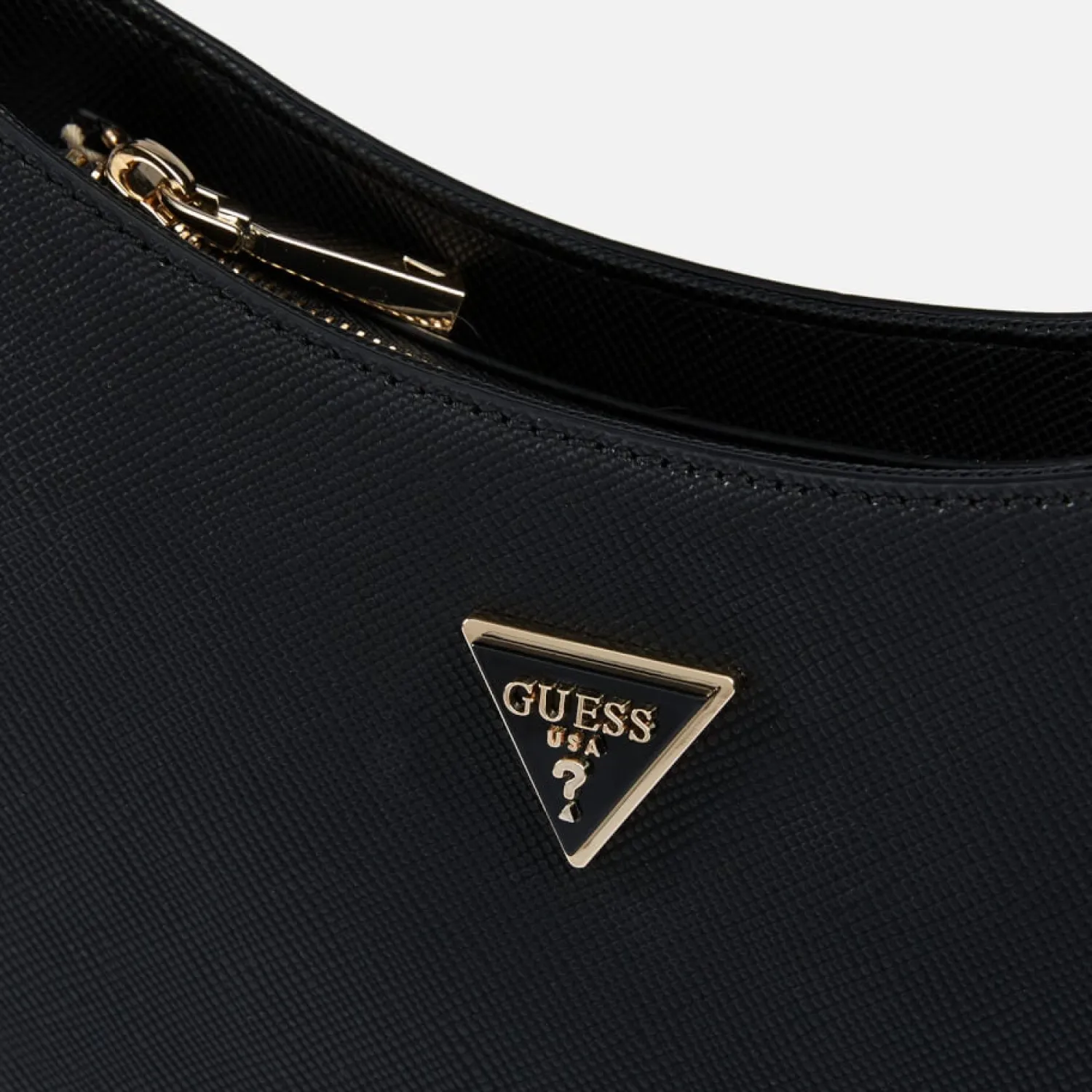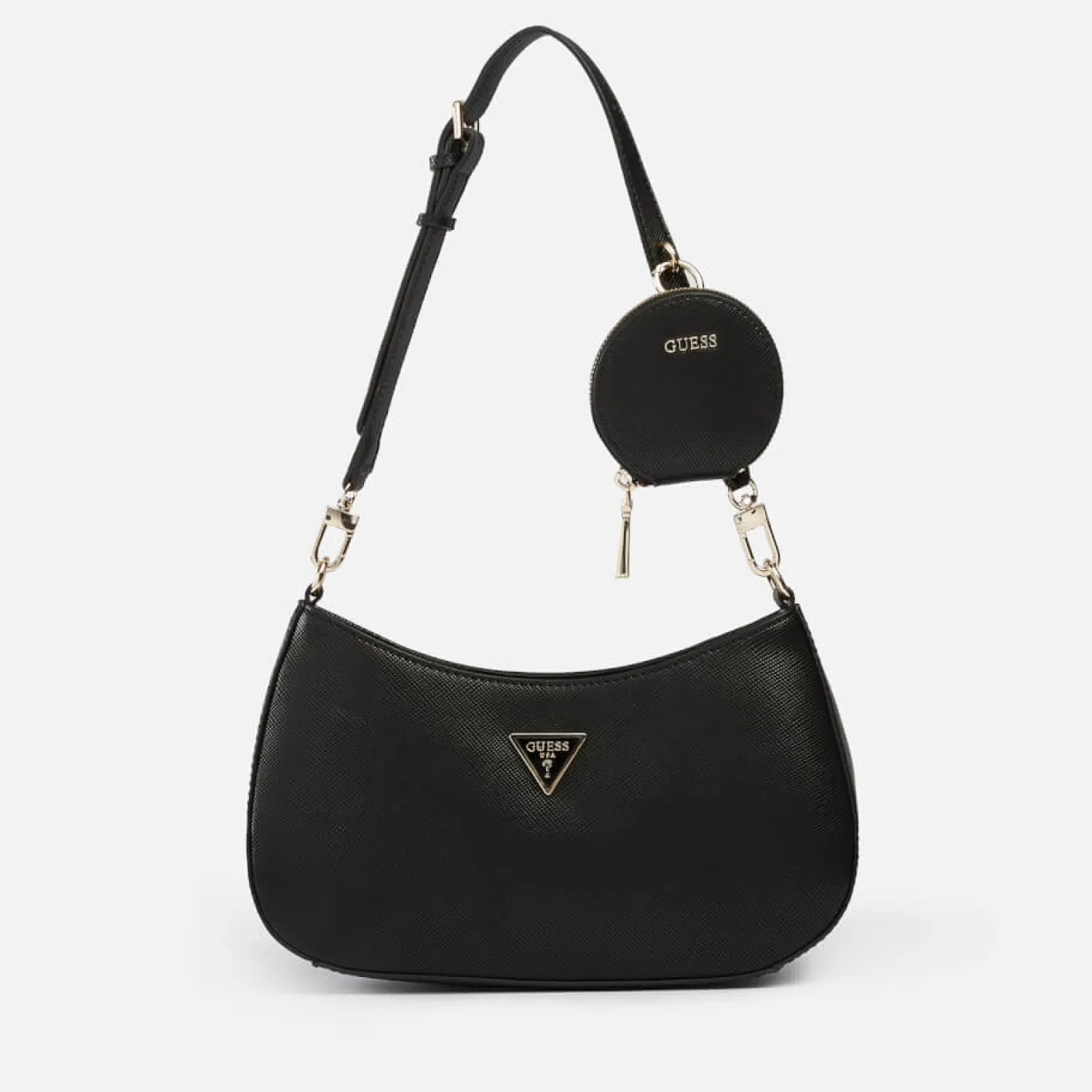Guess Alexie Shoulder BagBlack Saffiano Faux LeatherShoulder StrapDetachable PouchGold-Tone HardwareDesigner EmblemsZip …