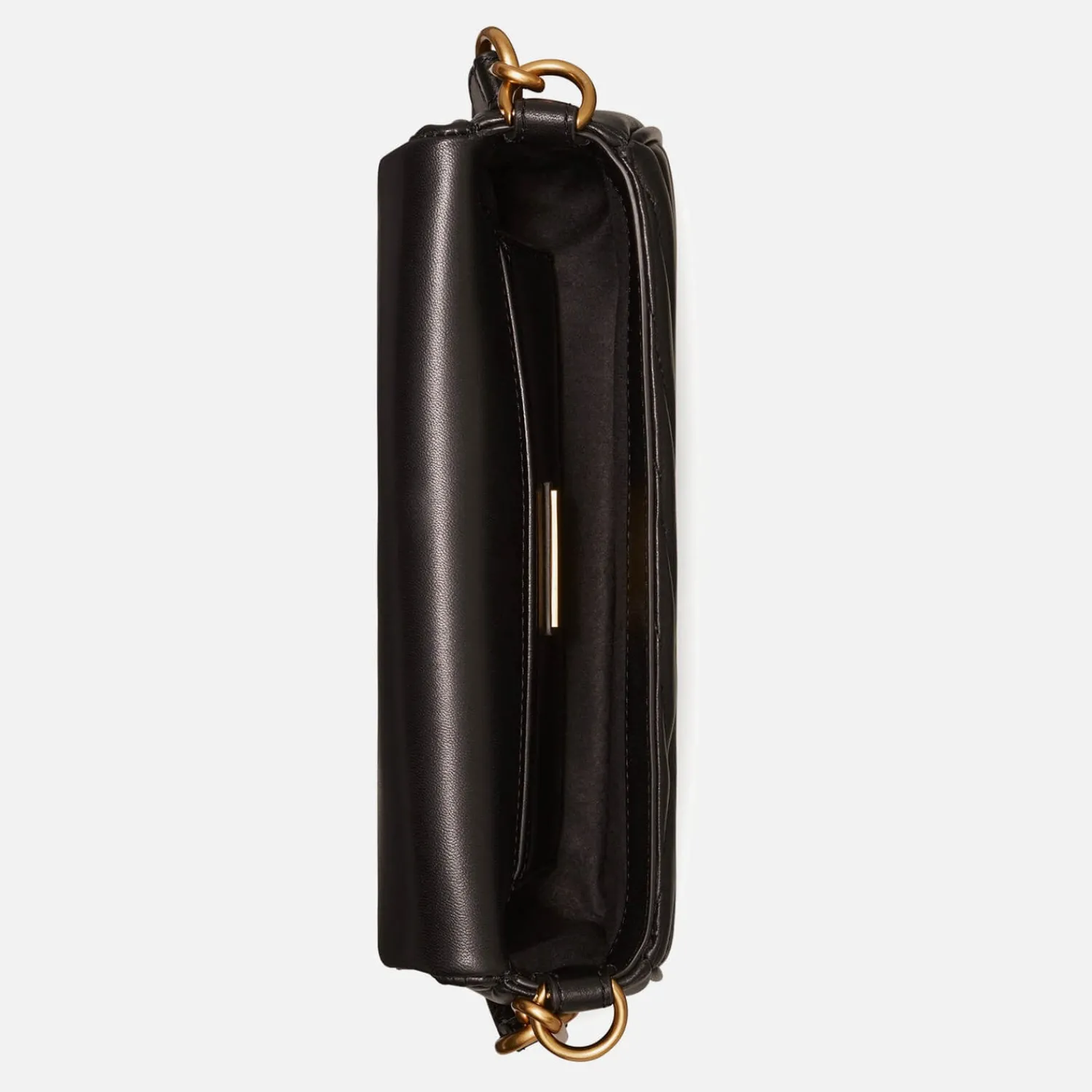 Tory Burch’S Bevelled ‘Double T’ Hardware Illuminates The Small Kira Shoulder Bag. Whipped Up From Supple Black Leather All-Over Chevron Quilting Offers A Soft And Pillowy Dimension. Gold-Tone Chain Inserts Elevate The Classic Silhouette.