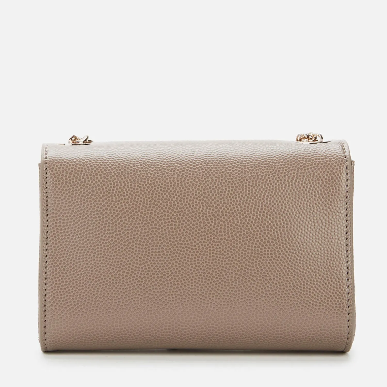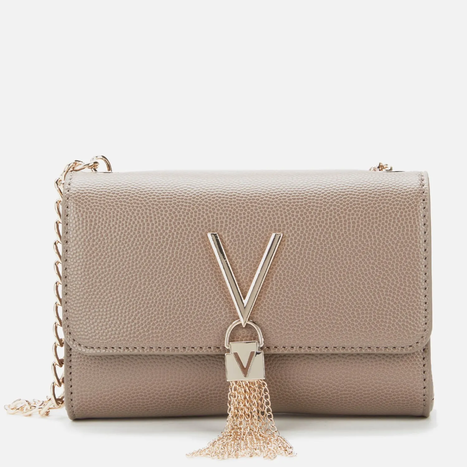 The Valentino Bags ‘Divina’ Bag Combines Timelessness And Elegance. The Small Shoulder Bag Is Realised From Faux Leather With A Fine Pebbled Texture. The Design Features A Fold-Over Flap Closure With A Metal ‘V’ Emblem To The Front And A Logo Embossed Padlock Charm With Chain Tassels. Worn With A Chain Strap The Bag Opens To Reveal A Zipped Wall Pocket.