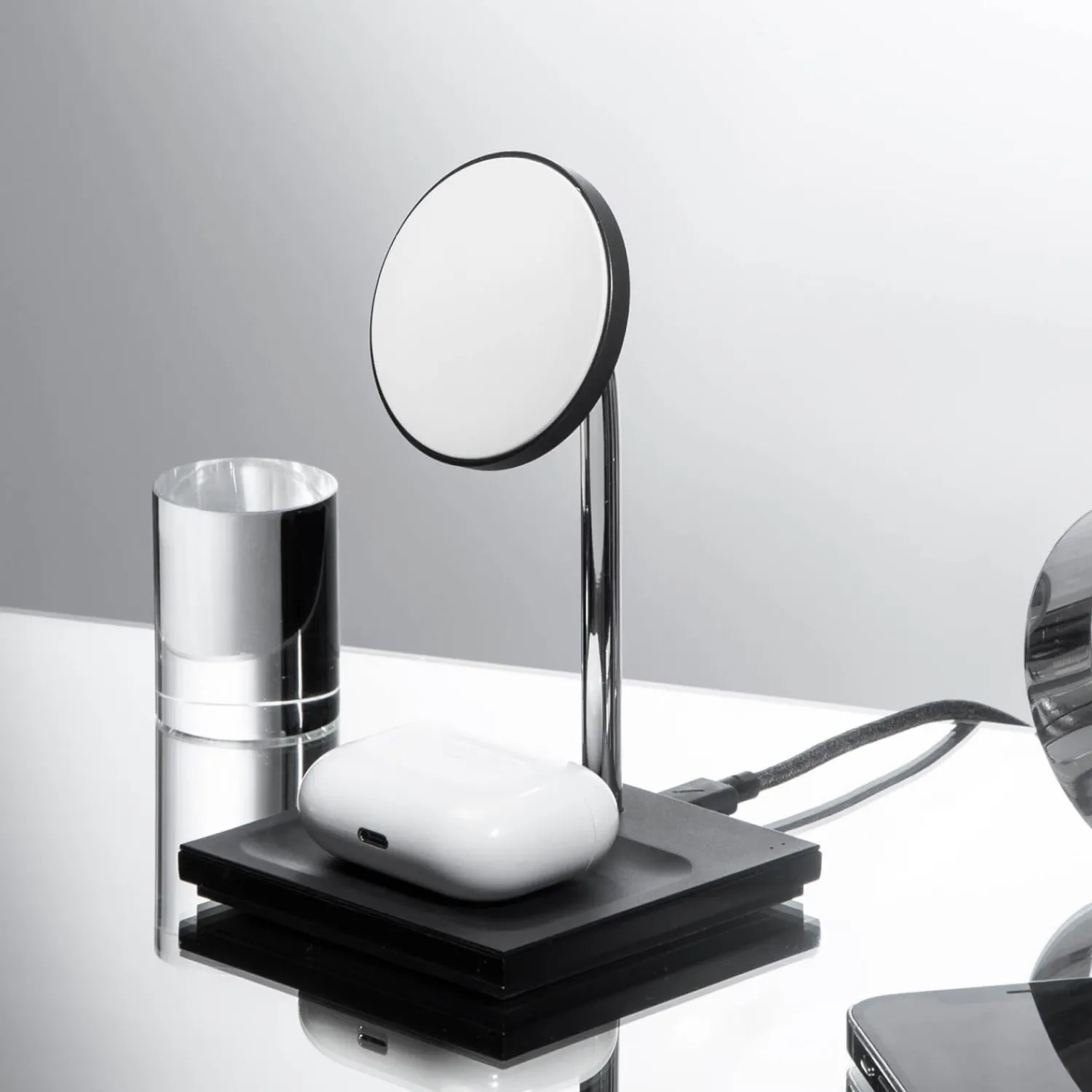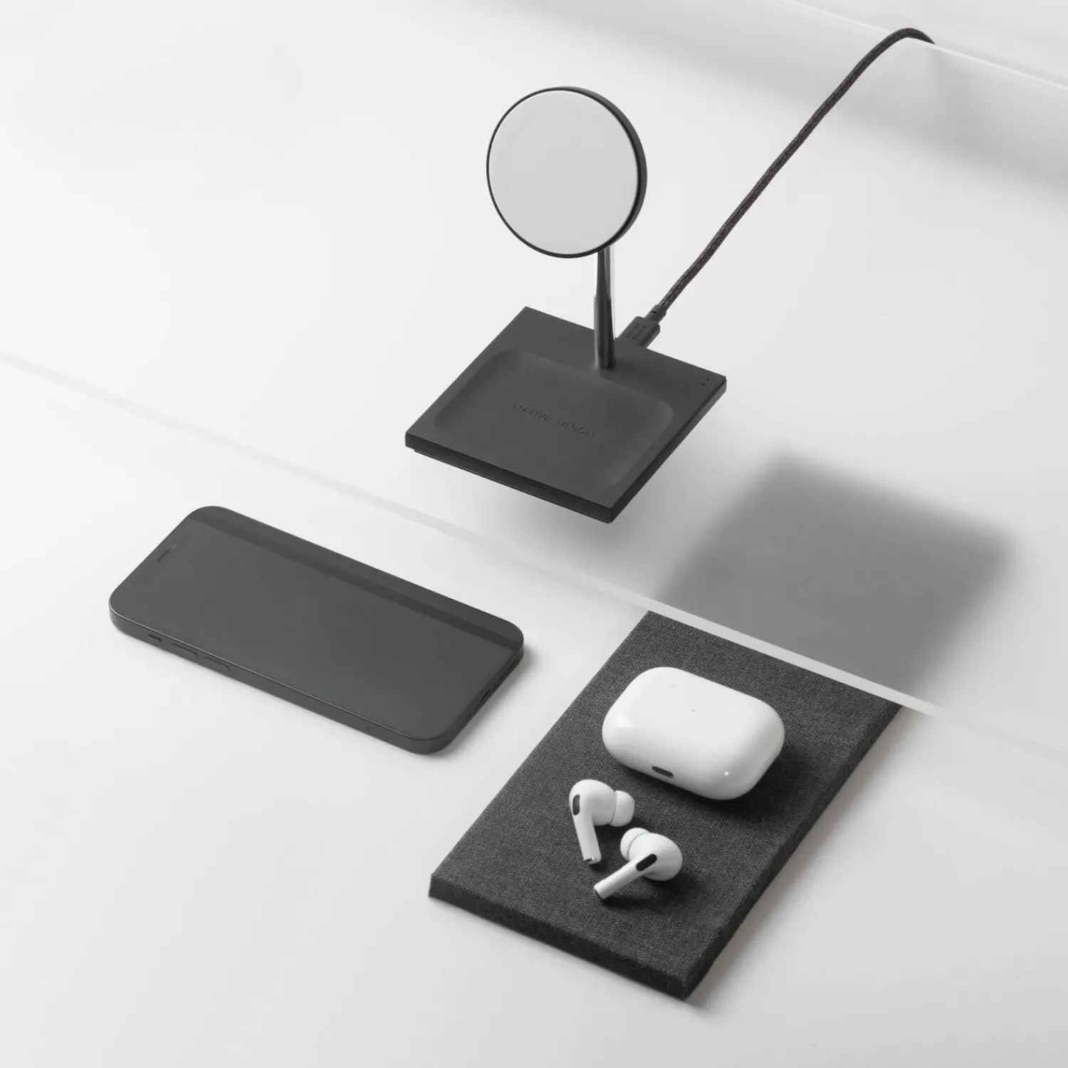 Elevating Magsafe. This Weighted Metal Stand Enhances The Performance And Convenience Of Magsafe Mounting Your Magsafe Charger For Full Portrait Or Landscape Mode Access To Your Iphone 12 Or 13 While Powering Up.