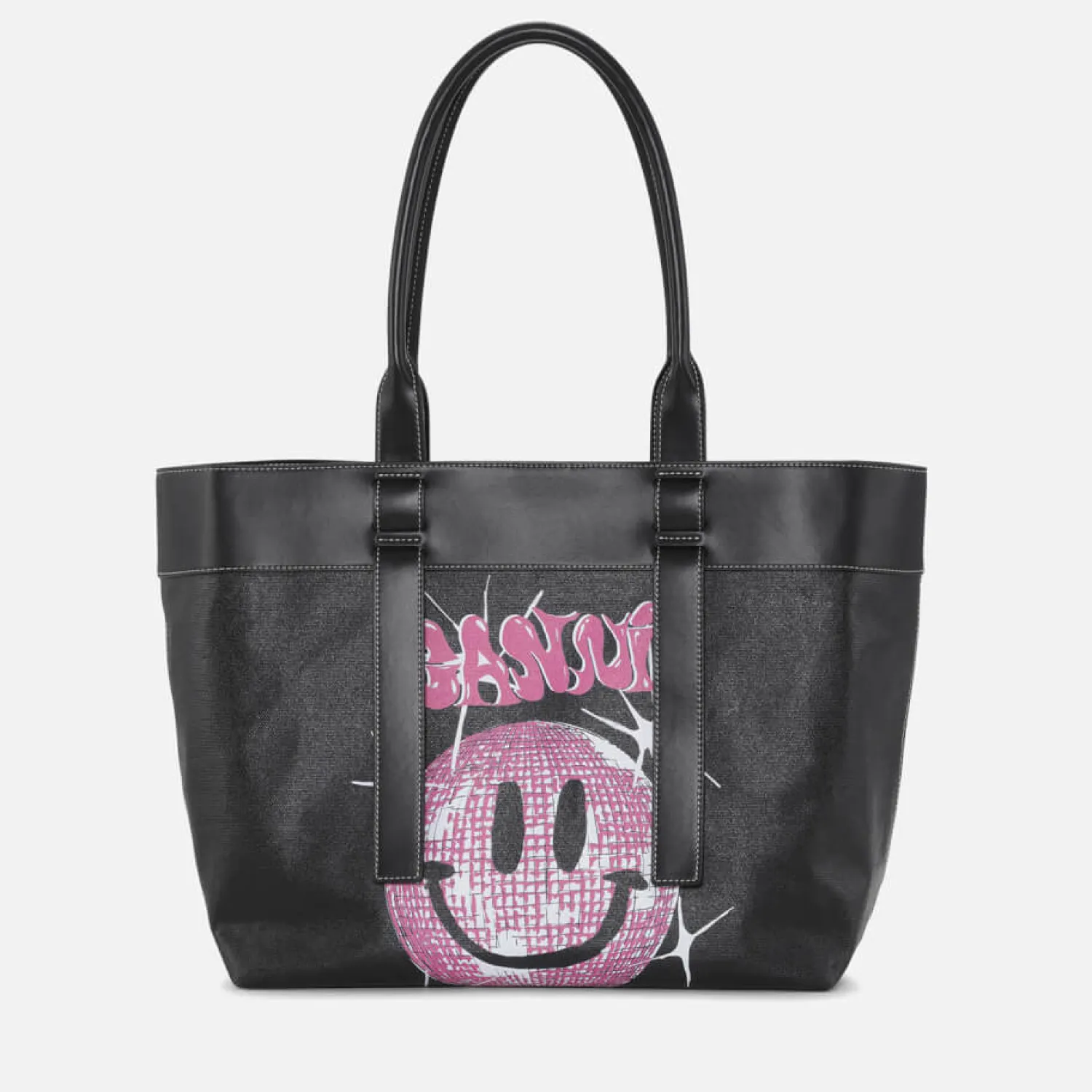 In True Scandi Style Copenhagen-Based Brand Ganni Presents The Canvas Medium Tote Bag Boasting Vibrant Colour With A Playful Aesthetic. Whipped Up With Certified Recycled Materials The Tote Features A Smiley Logo And An Internal Zip Compartment Perfect For Everyday Wearability. The Luxe Tote Offers Effortless Chic With A Cheeky Twist.