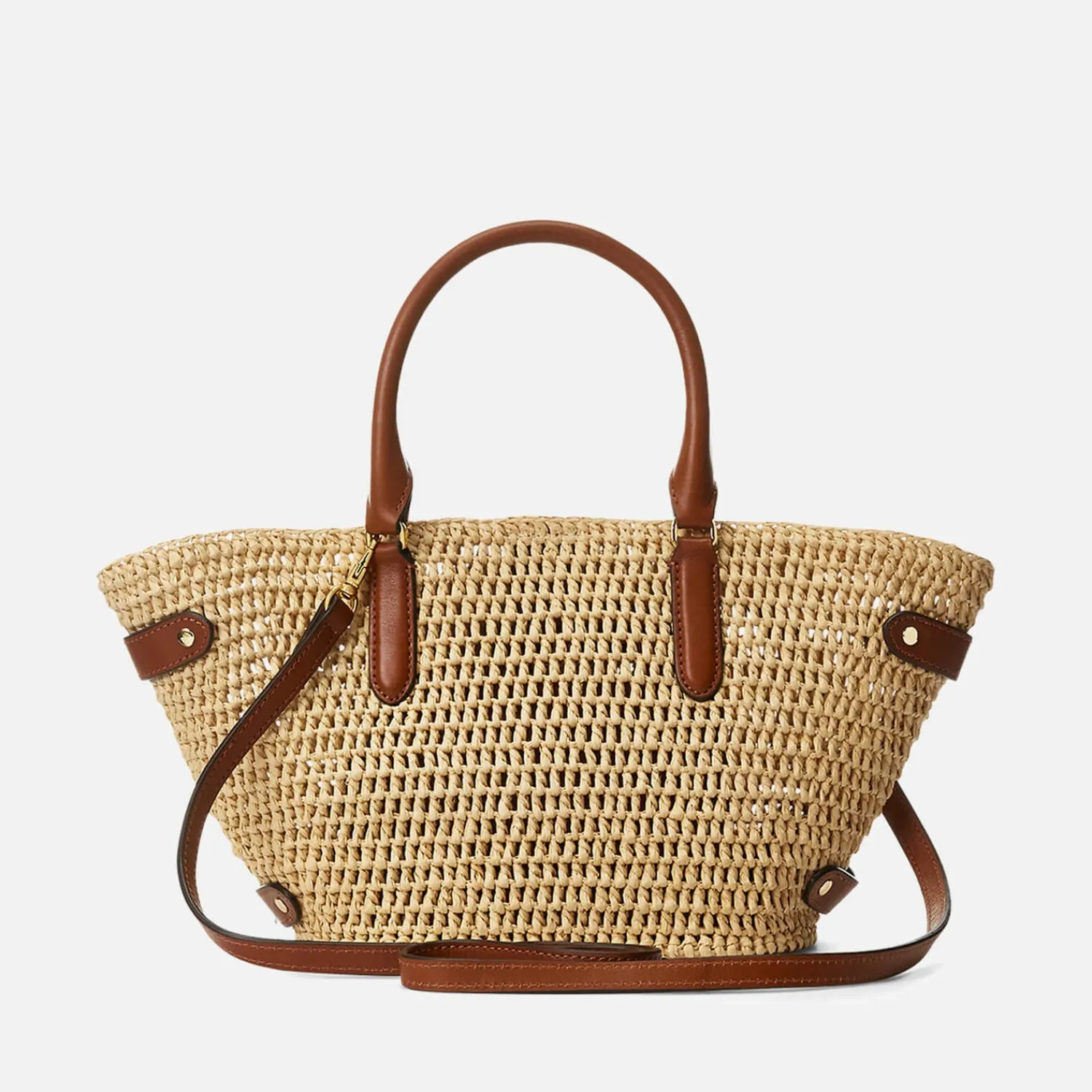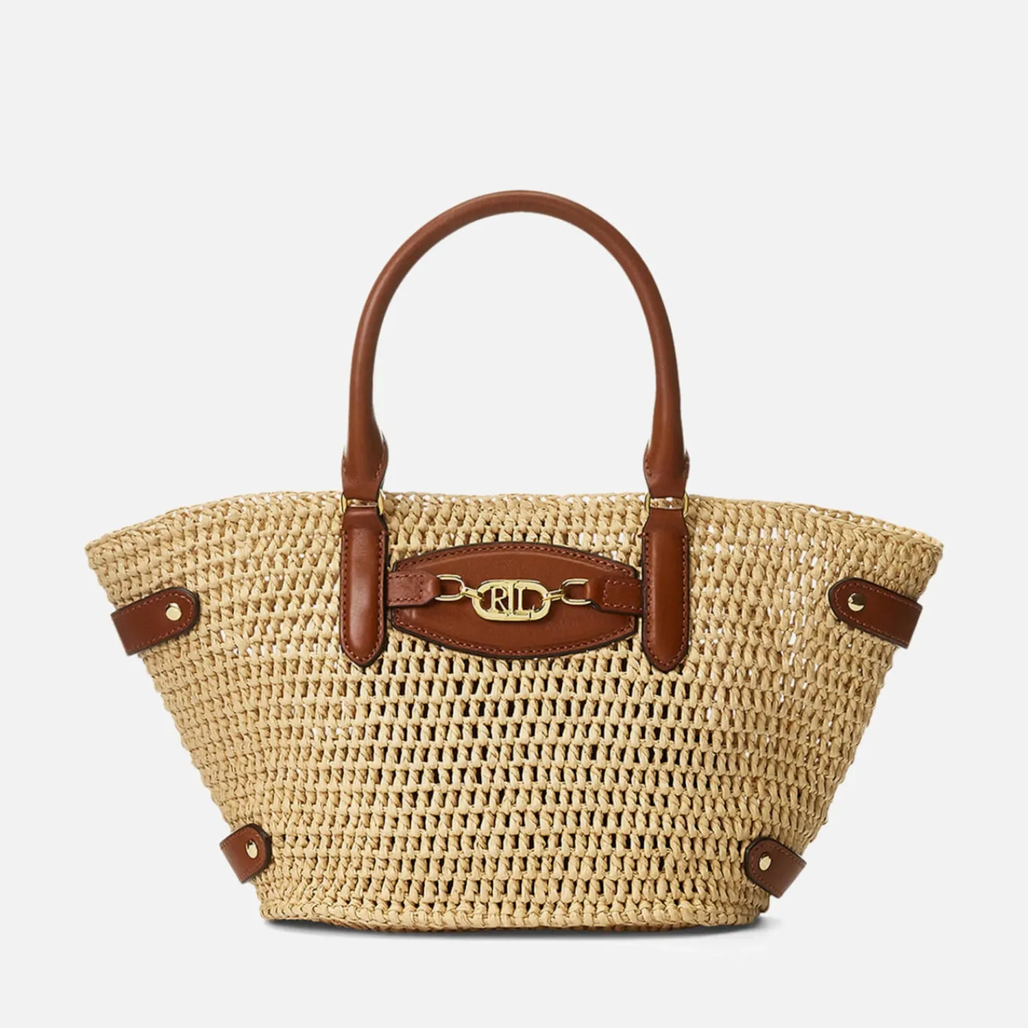 Lauren Ralph Lauren Daphney Tote BagBeige RaffiaTan LeatherTop HandlesDesigner Logo PlaqueInternal Slip PocketDesigner L…