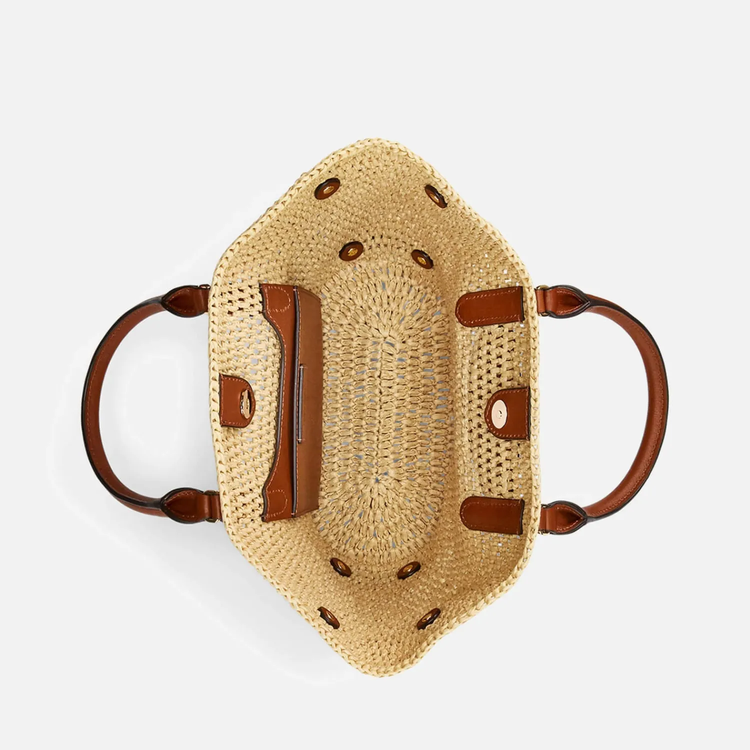 - Beige Raffia Tan Leather