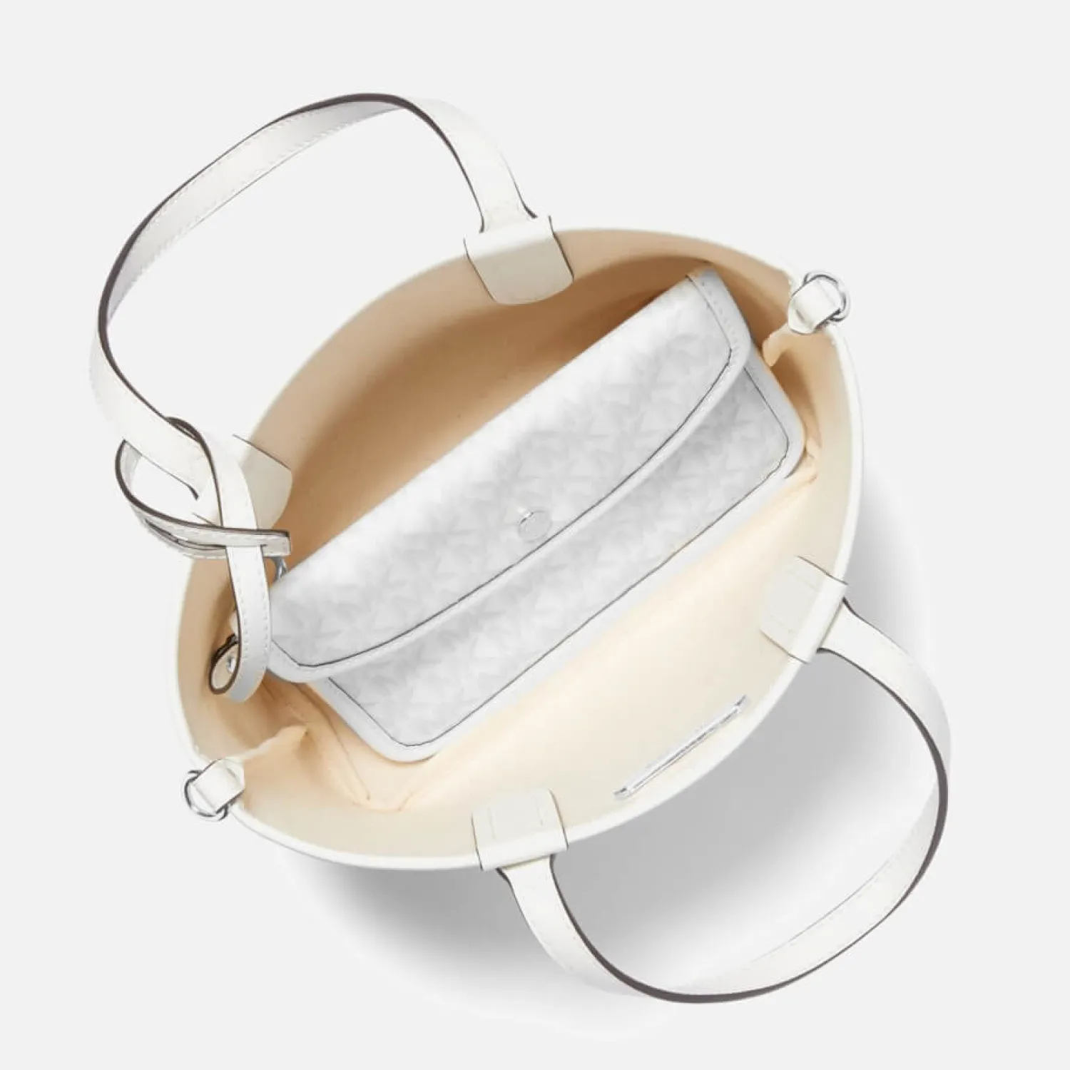 Michael Michael Kors Eliza Small Tote BagWhite And Grey Coated-CanvasAdjustable Shoulder StrapTop HandlesLuggage TagInte…