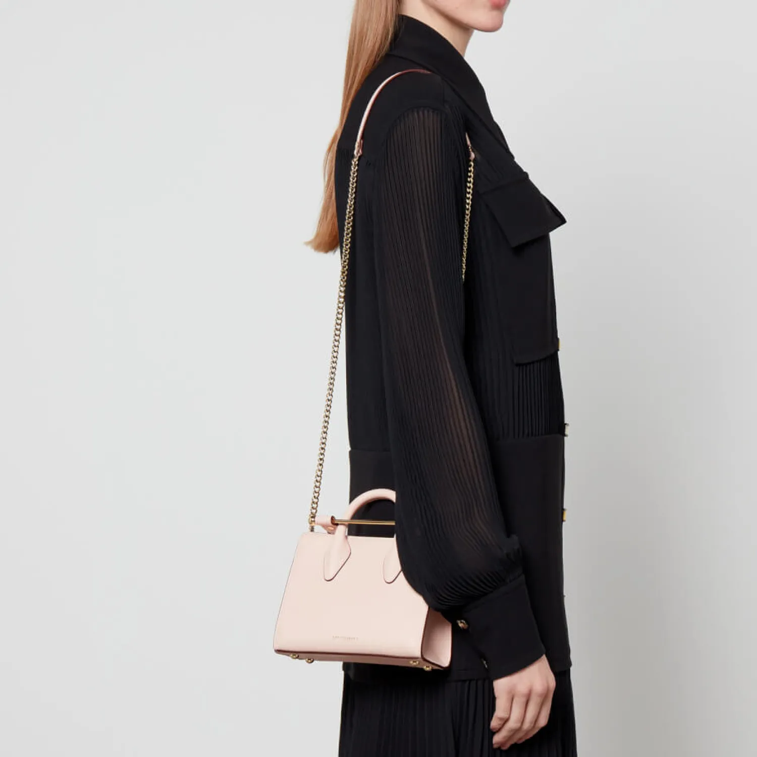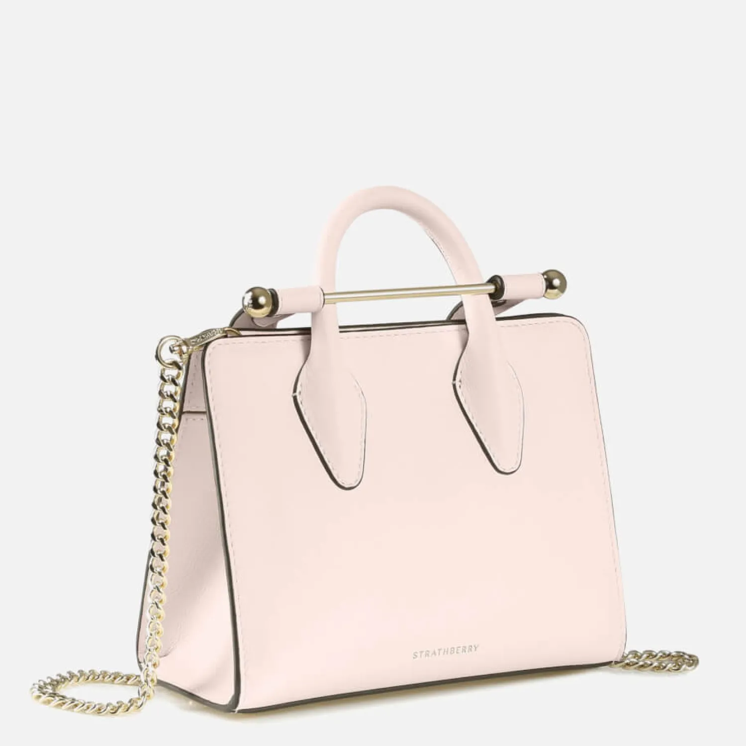 Strathberry Nano Tote BagLight Pink Leather100% LeatherDetachable Chain StrapTop HandleGold-Toned HardwareInterior Pocke…