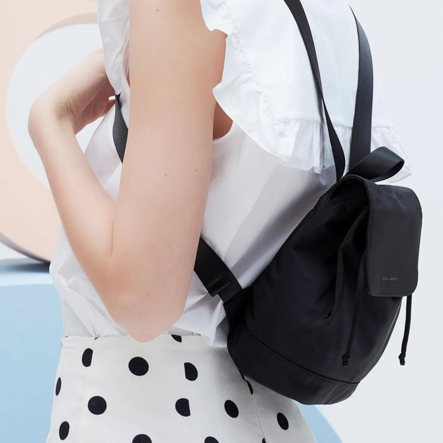 Estella Bartlett’s Mini Backpack Is Cut From Durable Black Nylon. The Mini Copperfield Has A Drawstring And Flap Closure And Two Internal Pockets For Stowing Smaller Items. Adjustable Woven Shoulder Straps And Top Handle Make For Comfortable Carrying.