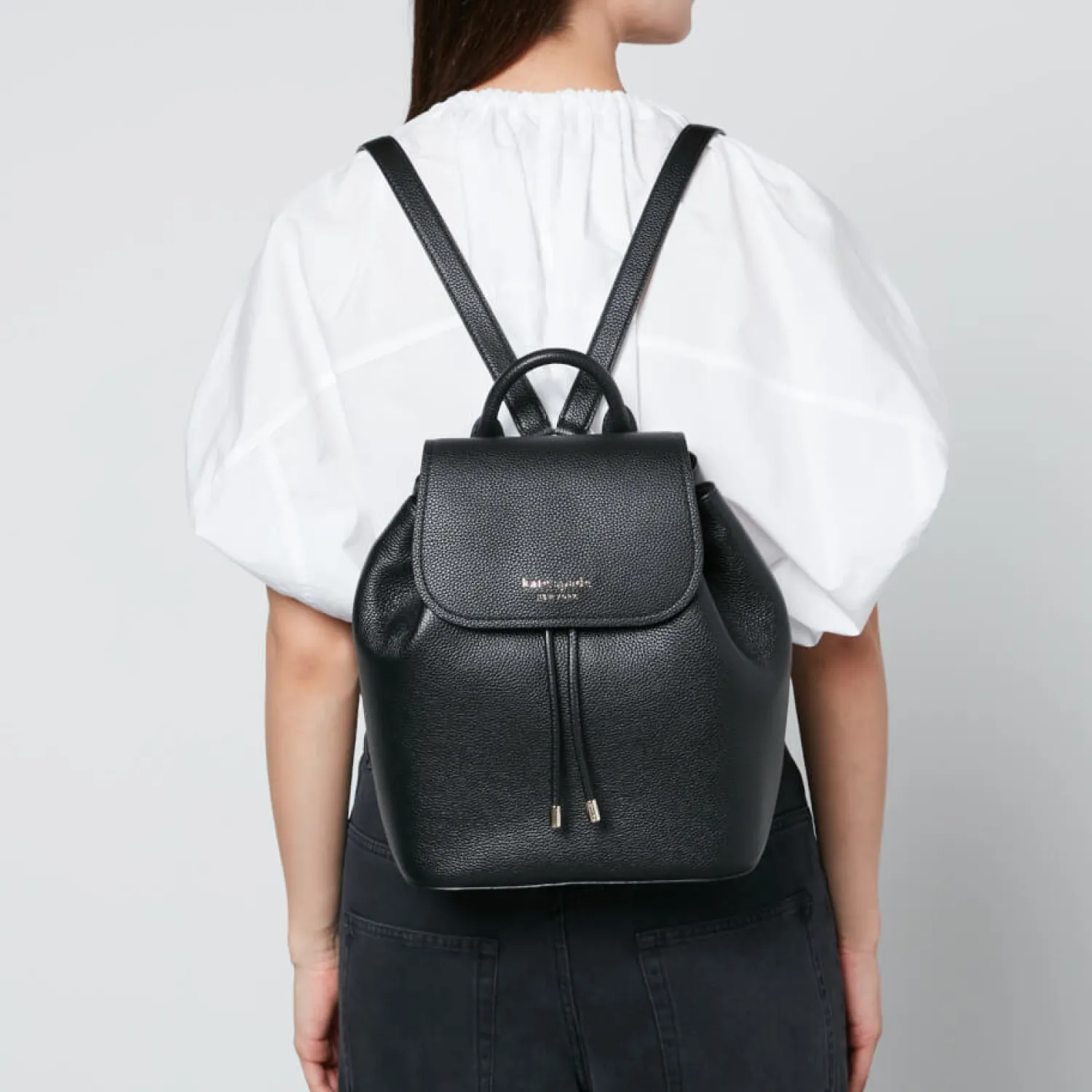 Elevate Your On-The-Go Attire With Kate Spade’s Cinch Backpack. Fashioned From Pebbled Leather It Has Adjustable Straps And A Drawstring Closure That’s Crowned With A Magnetic Flap. The Spacious Interior Is Roomy Enough For A Tablet Keys And All Your Other Everyday Essentials.