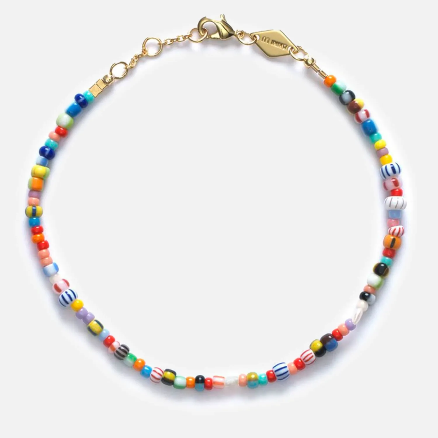 Anni Lu ‘Alaia’ Multicoloured Glass Bead Bracelet. Lobster Clasp In Brass With 18Kt Gold Plating. Branded Charm.