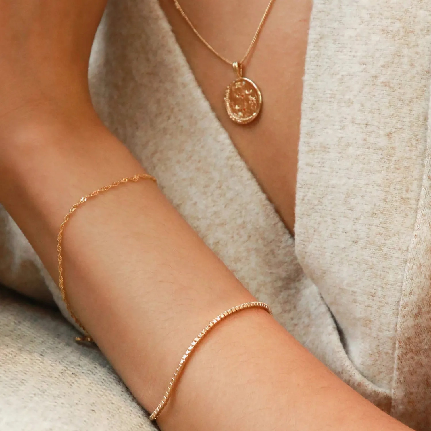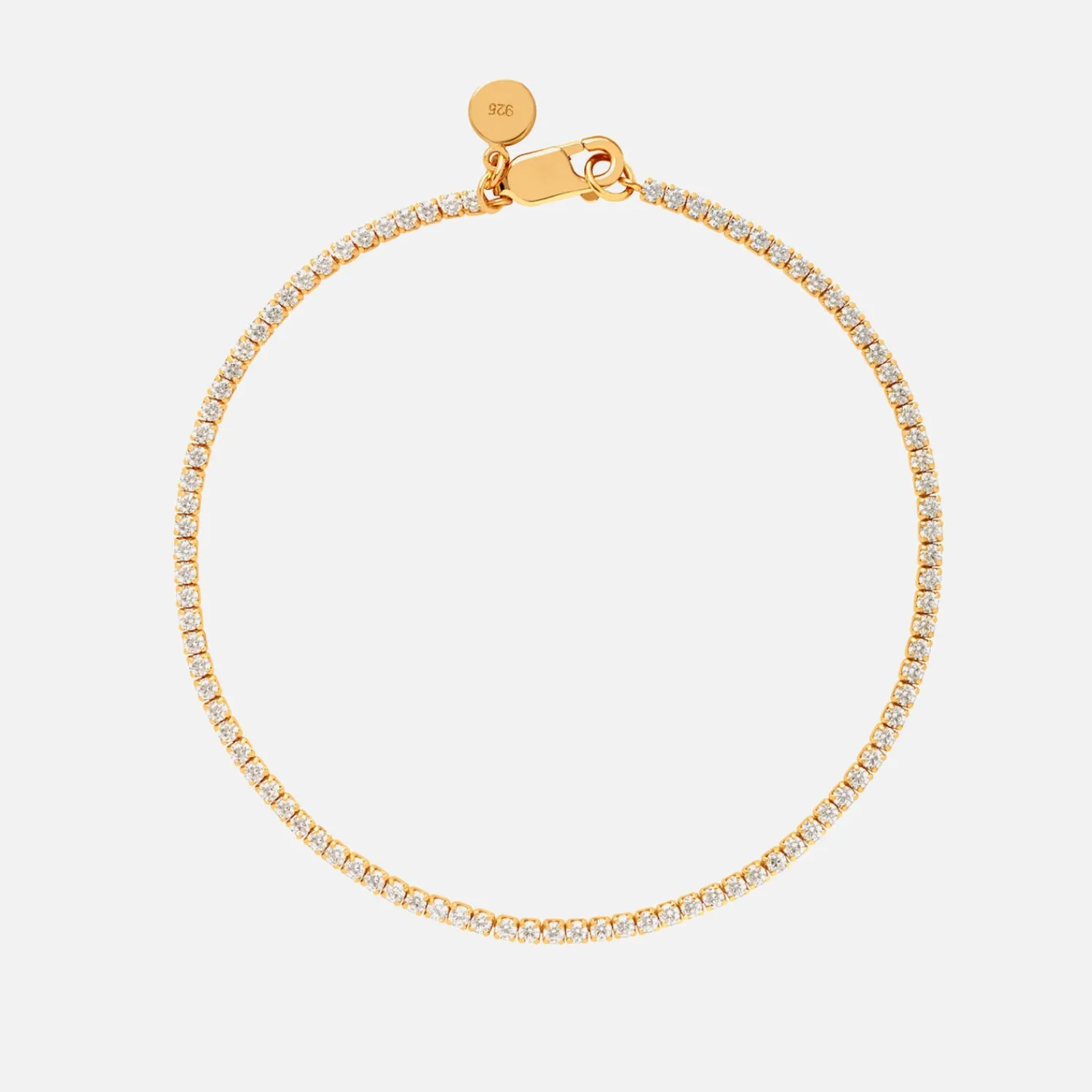 Astrid & Miyu’S Penchant For Fine Details Gives Each Style A Hand Finished Feel. The Tennis Bracelet Fashions A Timeless Silhouette That’S Realised In Recycled Sterling Silver That’S Been Plated With 18-Karat Gold. Dainty By Design It’S Finely Traced With Circular Crystals And Secured With A Lobster Clasp.