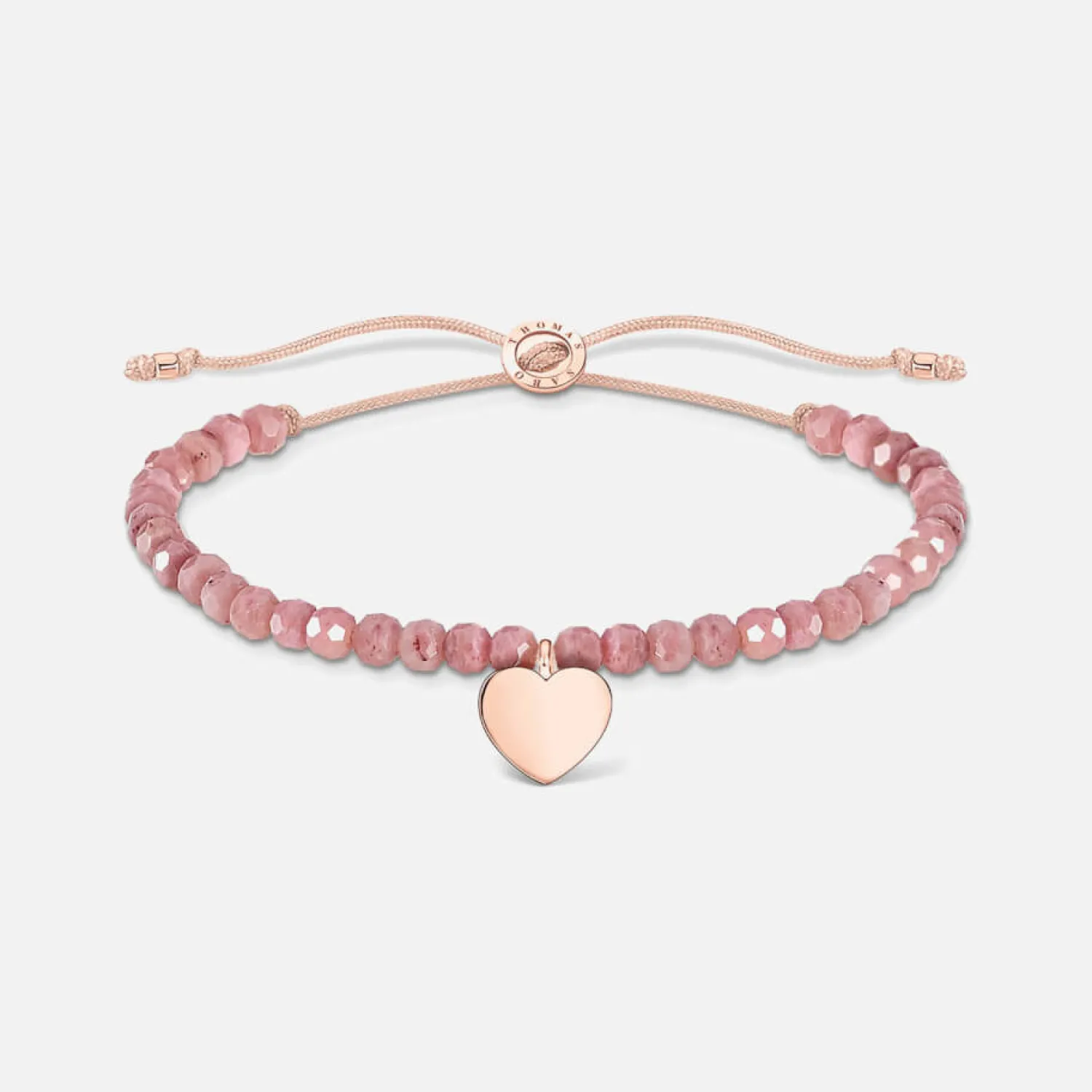 This Delicate Thomas Sabo Bracelet Features Pink Faceted Jasper Beads On A Braided Band. It Has A Small Heart Pendant With 18-Karat Rose-Gold Plating And A Logo Engraved Slider To Adjust The Length. It’s Presented In A Branded Gift Box And Pouch.