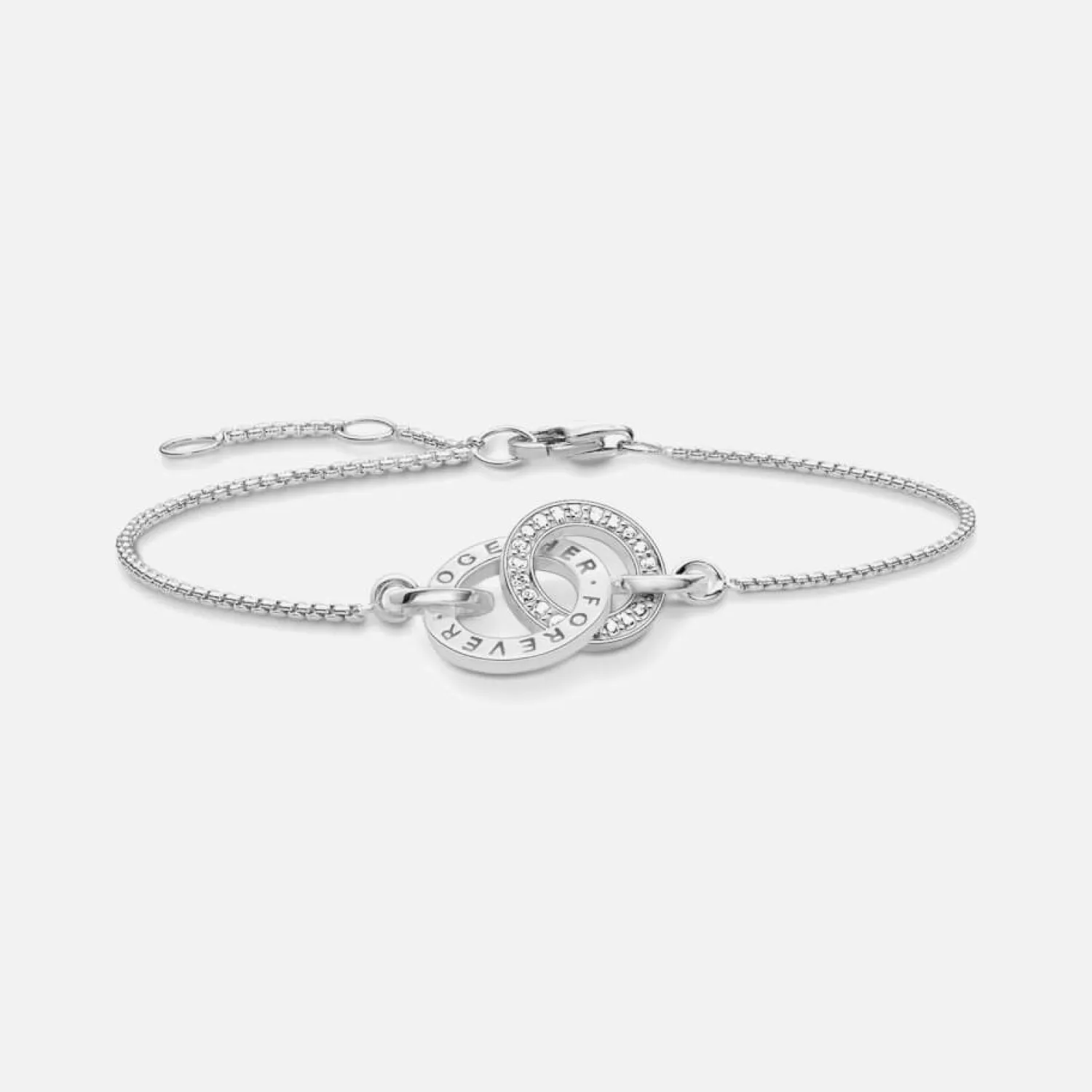 Thomas Sabo’S Silver Bracelet Has Interlocking Rings With Sparkling Pave Zirconias And ‘Together Forever’ Engraving. Crafted From Sterling Silver The Feminine Design Has A Delicate Chain With An Adjustable Lobster Clasp Fastening. A Branded Gift Box And Pouch Is Included.