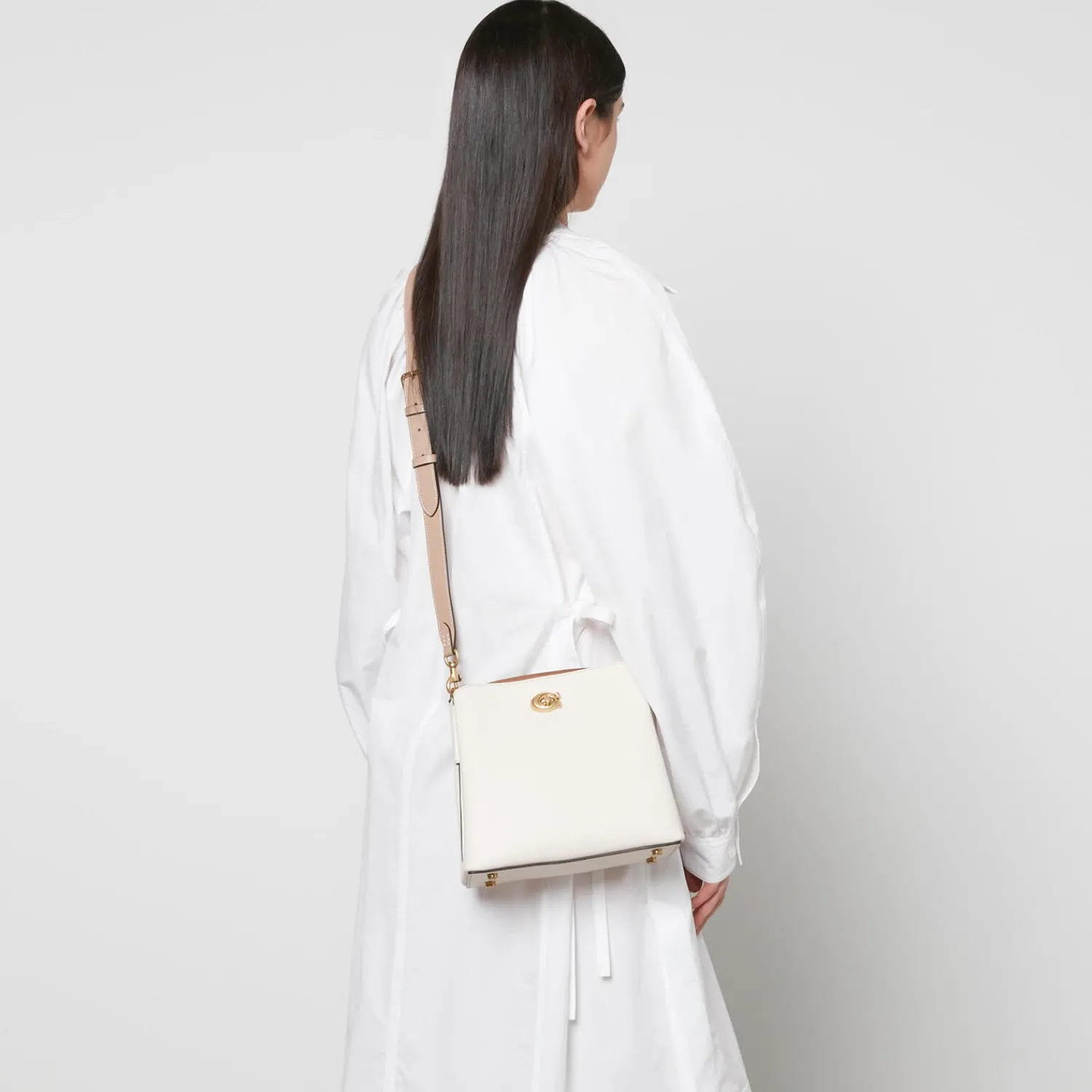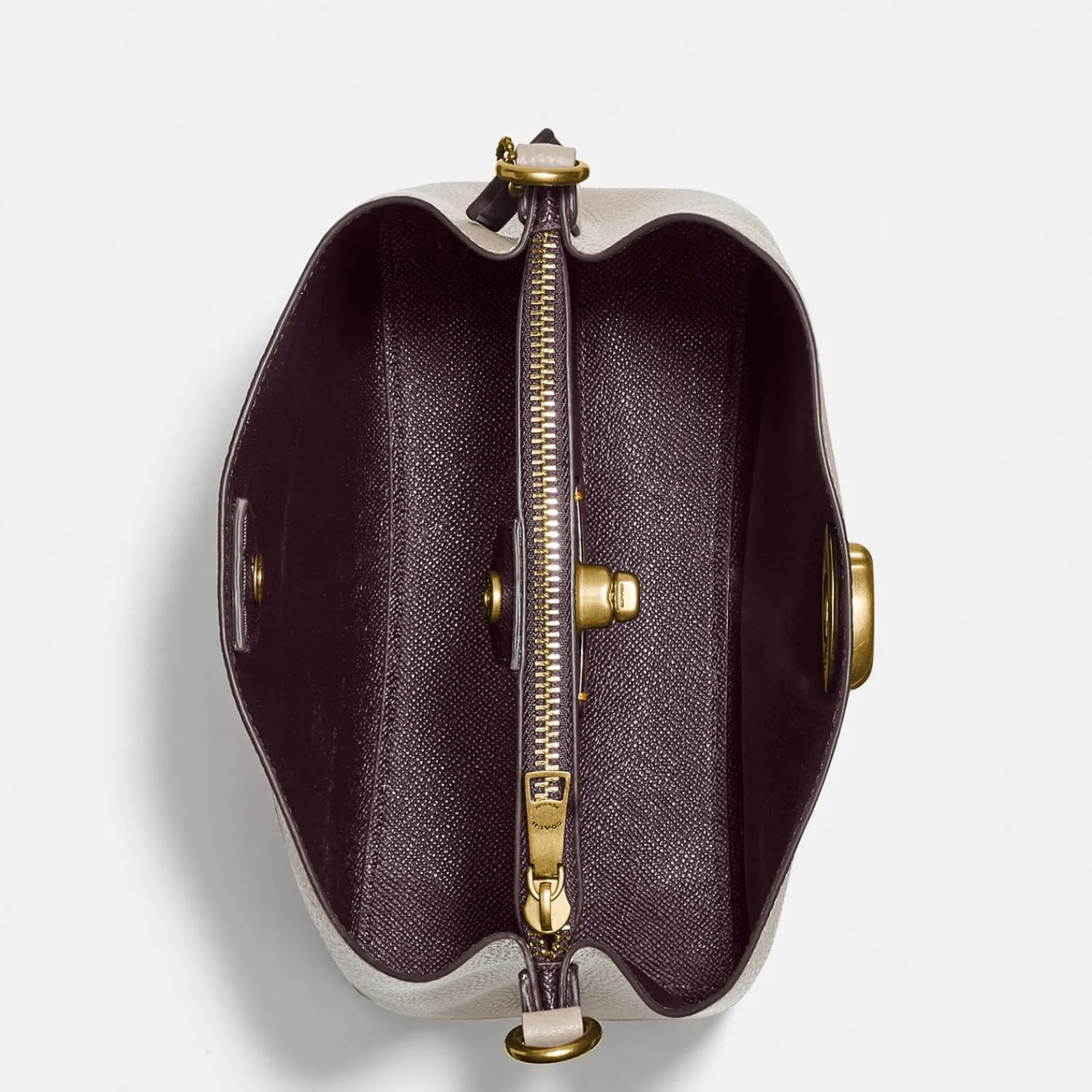 Coach’S Willow Bucket Bag 21 Is The Perfect Day-To-Day Bag. Crafted From Polished Pebbled Leather With Brushed Brass Hardware It Has A Streamlined Bucket Silhouette Secured By The Label’S Signature Turnlock Closure With Four Protective Feet At The Base. Note The Organised Plum Interior With Two Compartments And A Central Zipped Pocket.