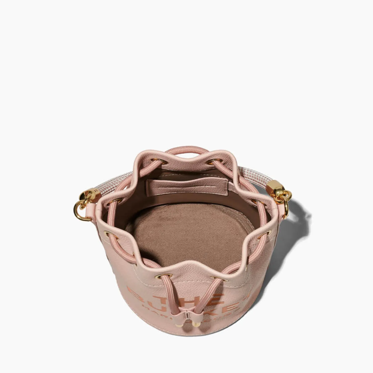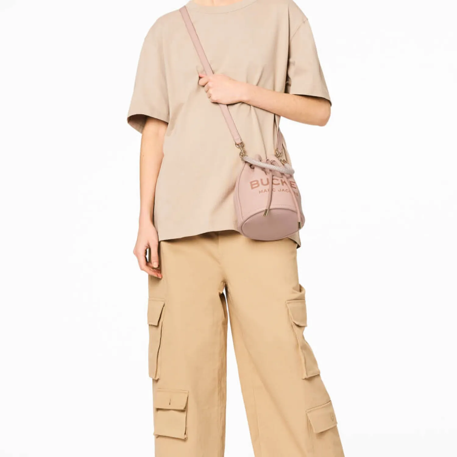 Marc Jacobs Welcomes A New Addition To Its Collection With This Bucket Bag. Made From Grained Leather It Arrives In A Pale Pink Colourway And Is Fashioned Into A Compact Silhouette That Fits All The Small Essentials. A Woven Top Handle Completes The Design Along With A Detachable Cross-Body Strap.