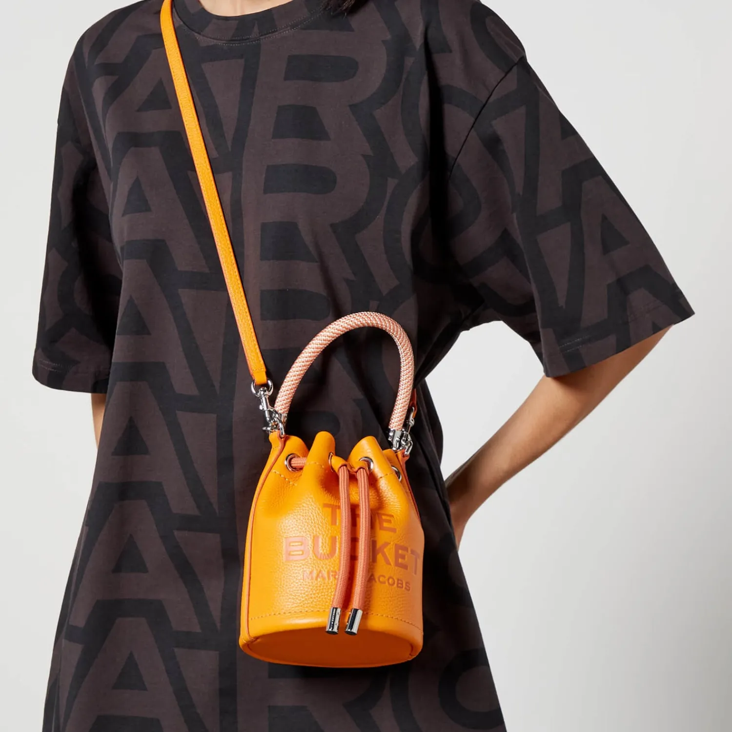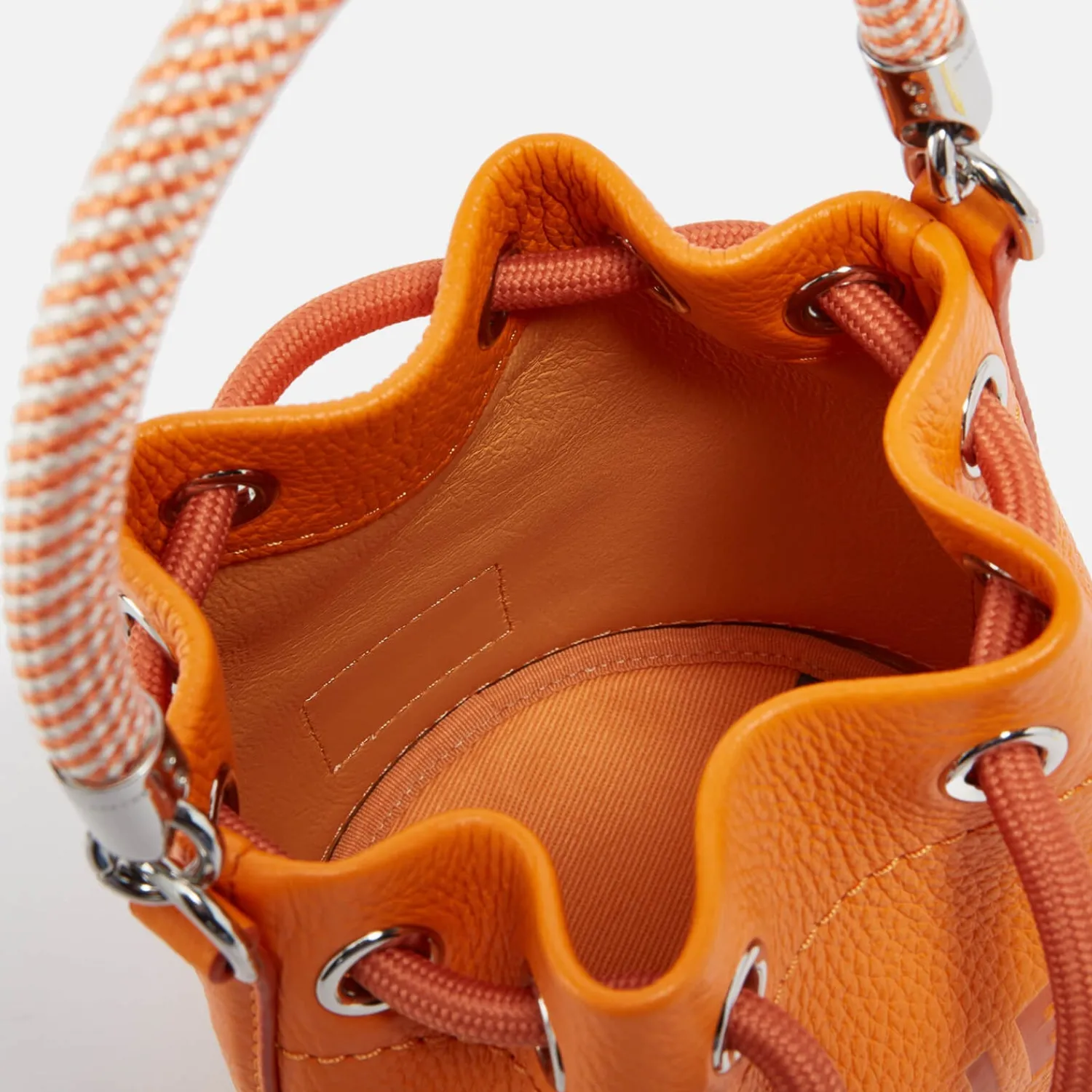 Marc Jacobs Creates A Scaled-Back Rendition Of The Label’s Bucket Silhouette With This Micro Bucket Bag. It Is Made From Textured Orange Leather And Showcases The Label’s Signature Logo In Tonal Detail. A Woven Handle Tops The Design For Grab-And-Go Appeal Along With An Adjustable Cross-Body Strap.