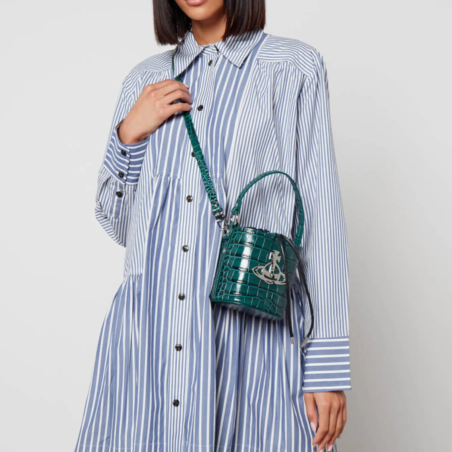 Vivienne Westwood Daisy BagGreen Croc-Effect LeatherLogo PlagueSilver-Tone HardwareDetachable Shoulder StrapDrawstring C…