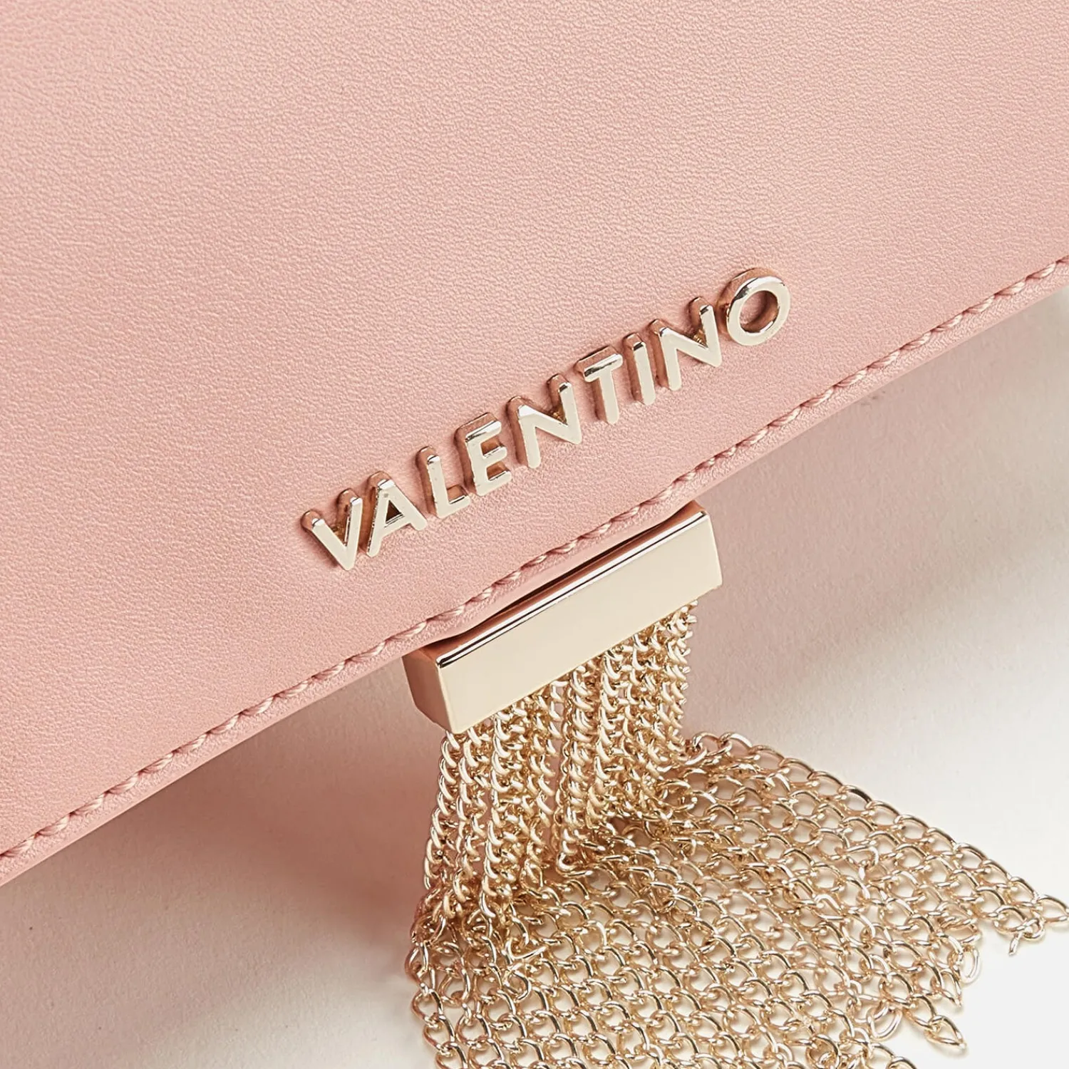 Valentino Bags Have Been Tailoring Luxury Bags Since The 1960S. Crafted From Baby Pink Faux Leather The Compact Piccadilly Shoulder Bag Features A Flap Closure With Tonal Stitching At The Trims And Gold-Toned Metal Branding. The Slender Chain Strap Coupled With Chain Tassel Detailing Lend A Refined Finish.