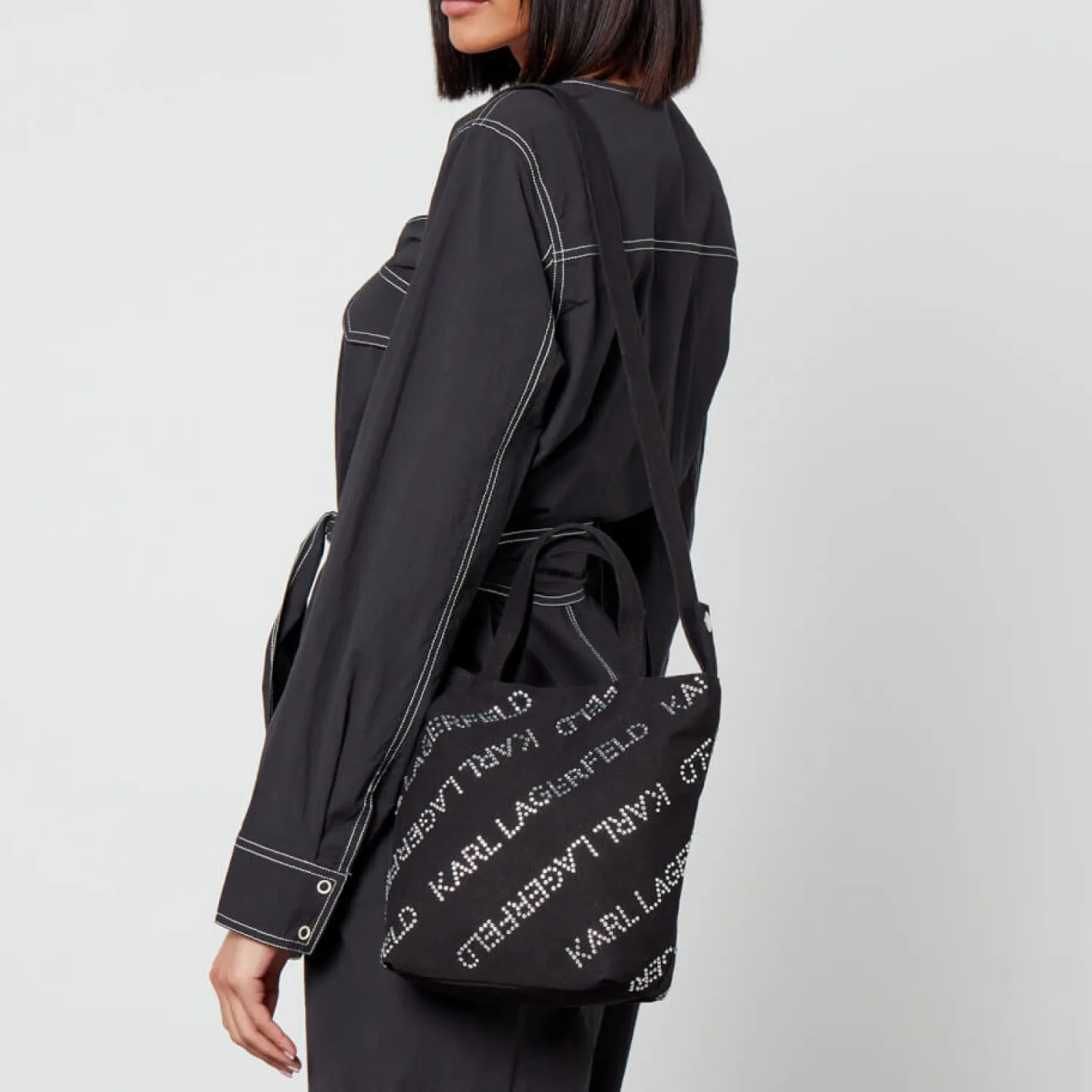 Be the first to review “Cosmetic Bags*Karl Lagerfeld Crystal-Embellished Canvas Small Shopper Bag” Cancel reply