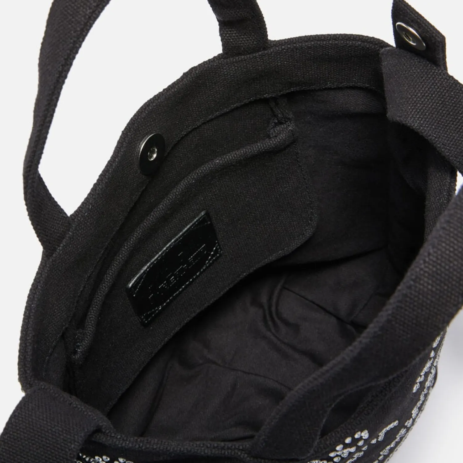 Karl Lagerfeld Small Shopper BagBlack CanvasLogo Crystal EmbellishementAdjustable Shoulder StrapInner Slip PocketMagneti…