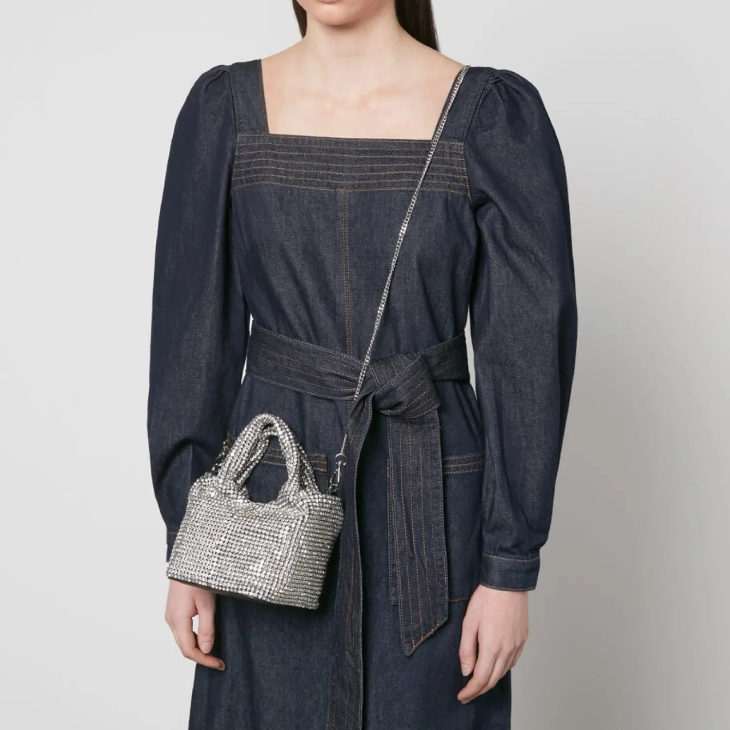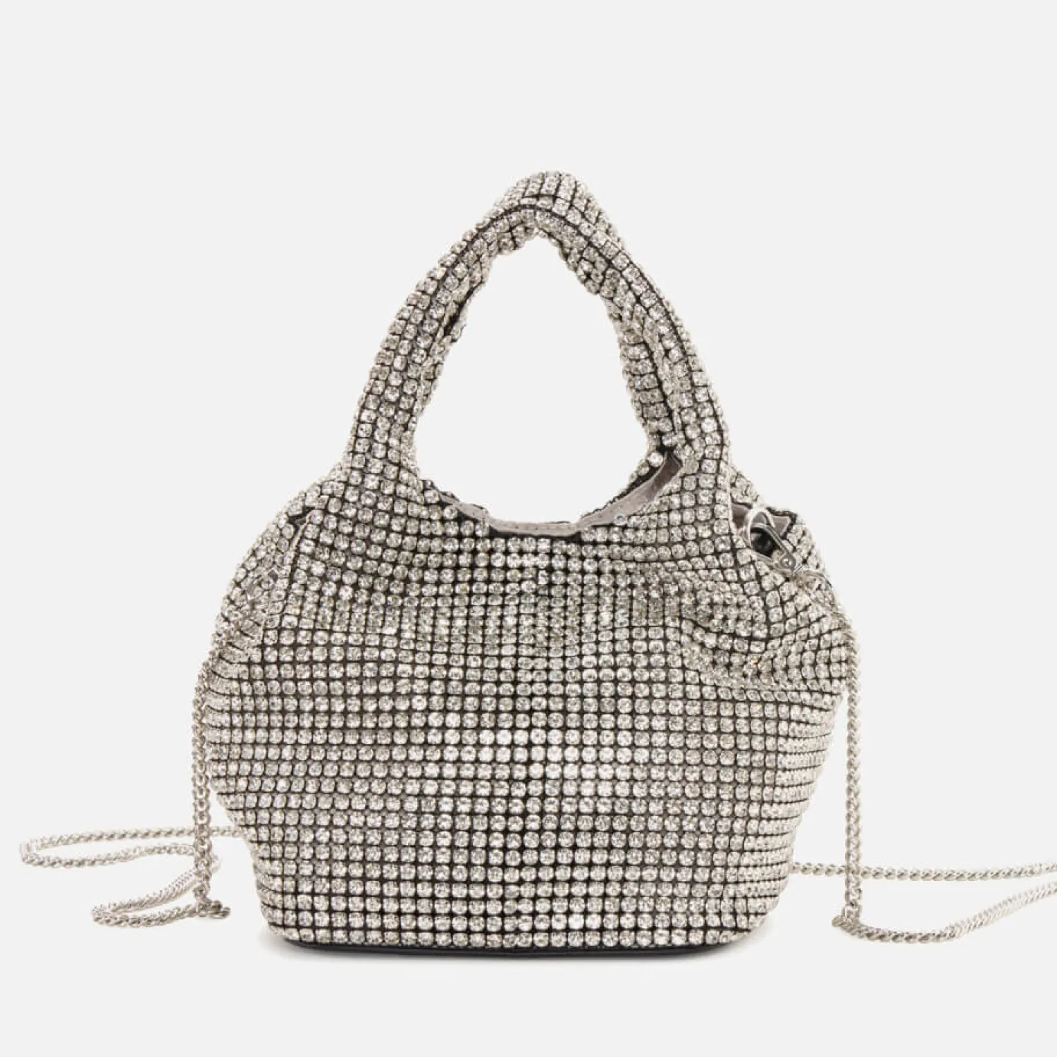 - Two Top Handles Chain Shoulder Strap Crystal Embellishments Silver-Tone Hardware
