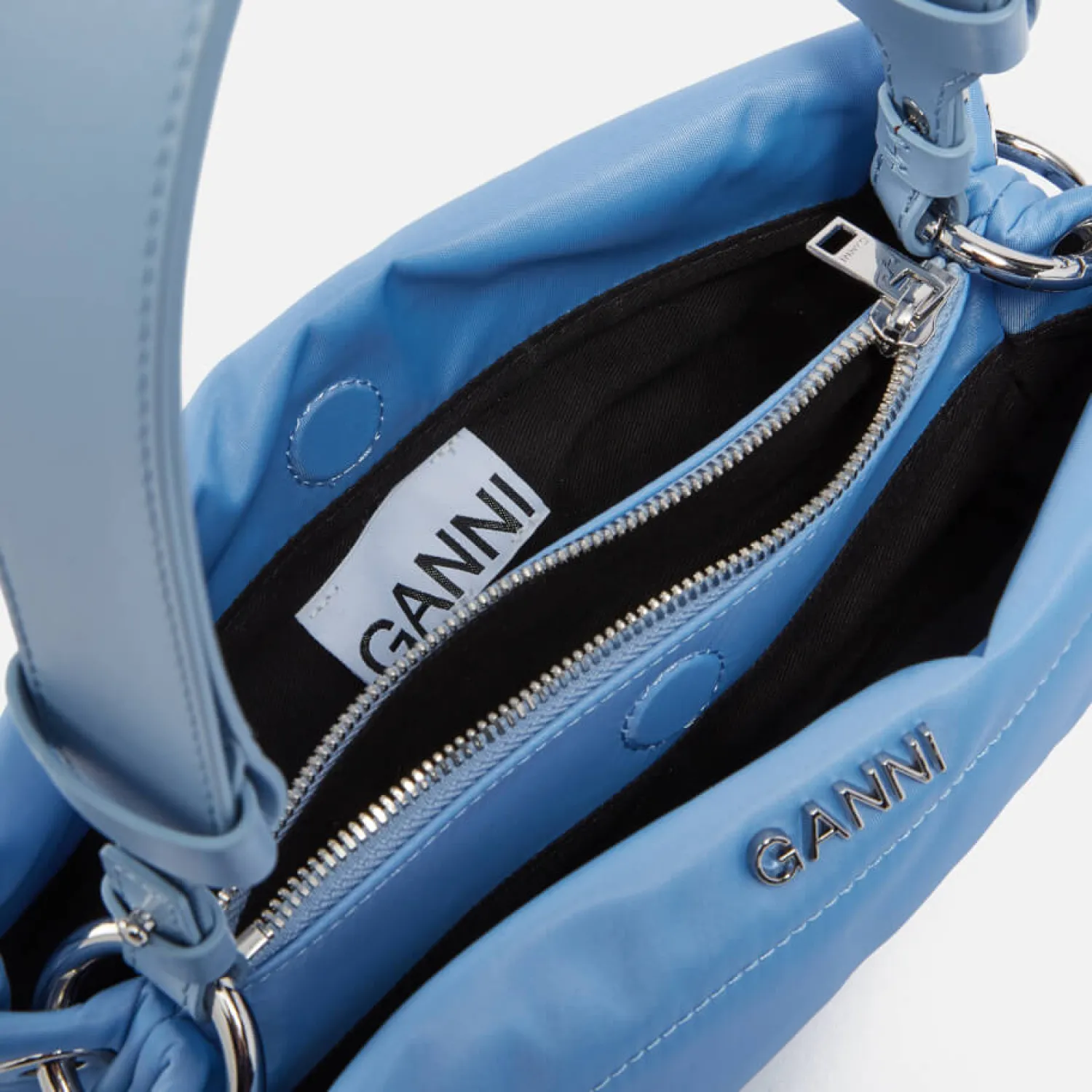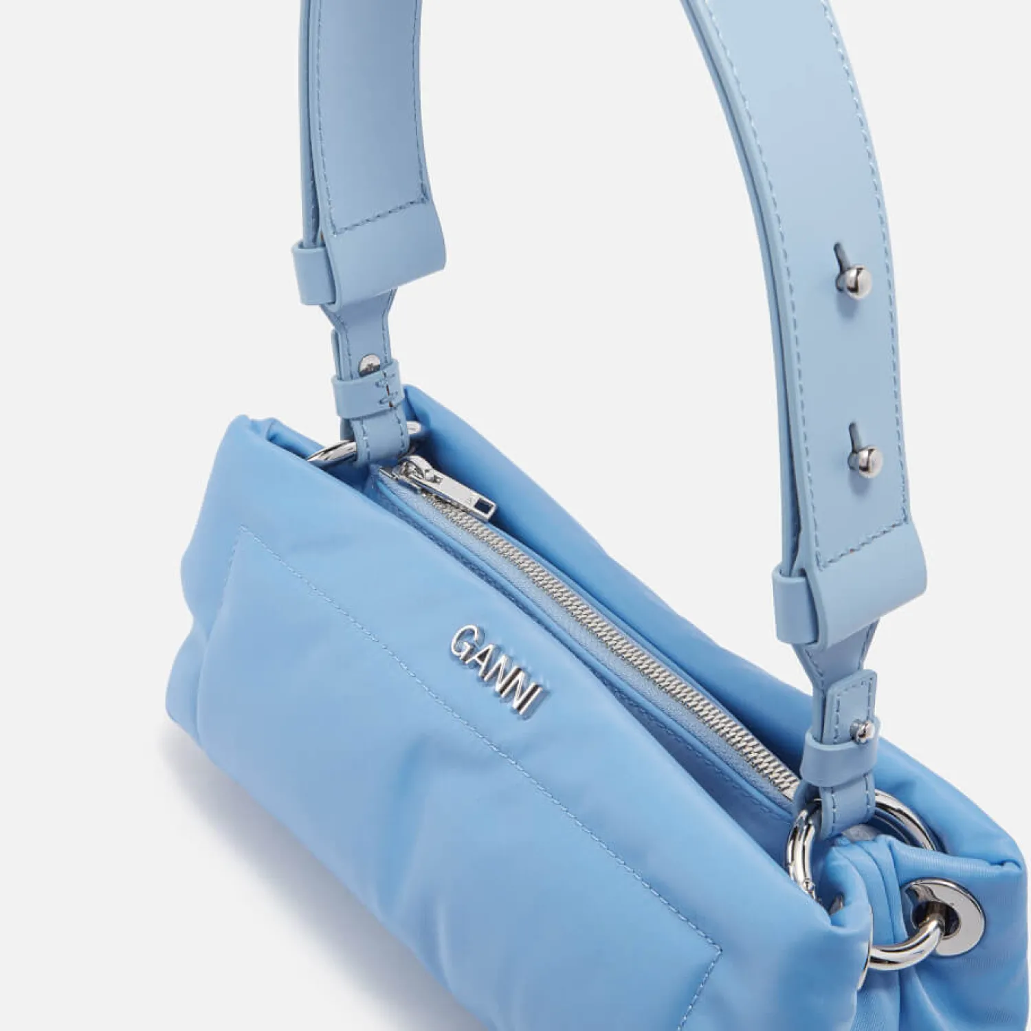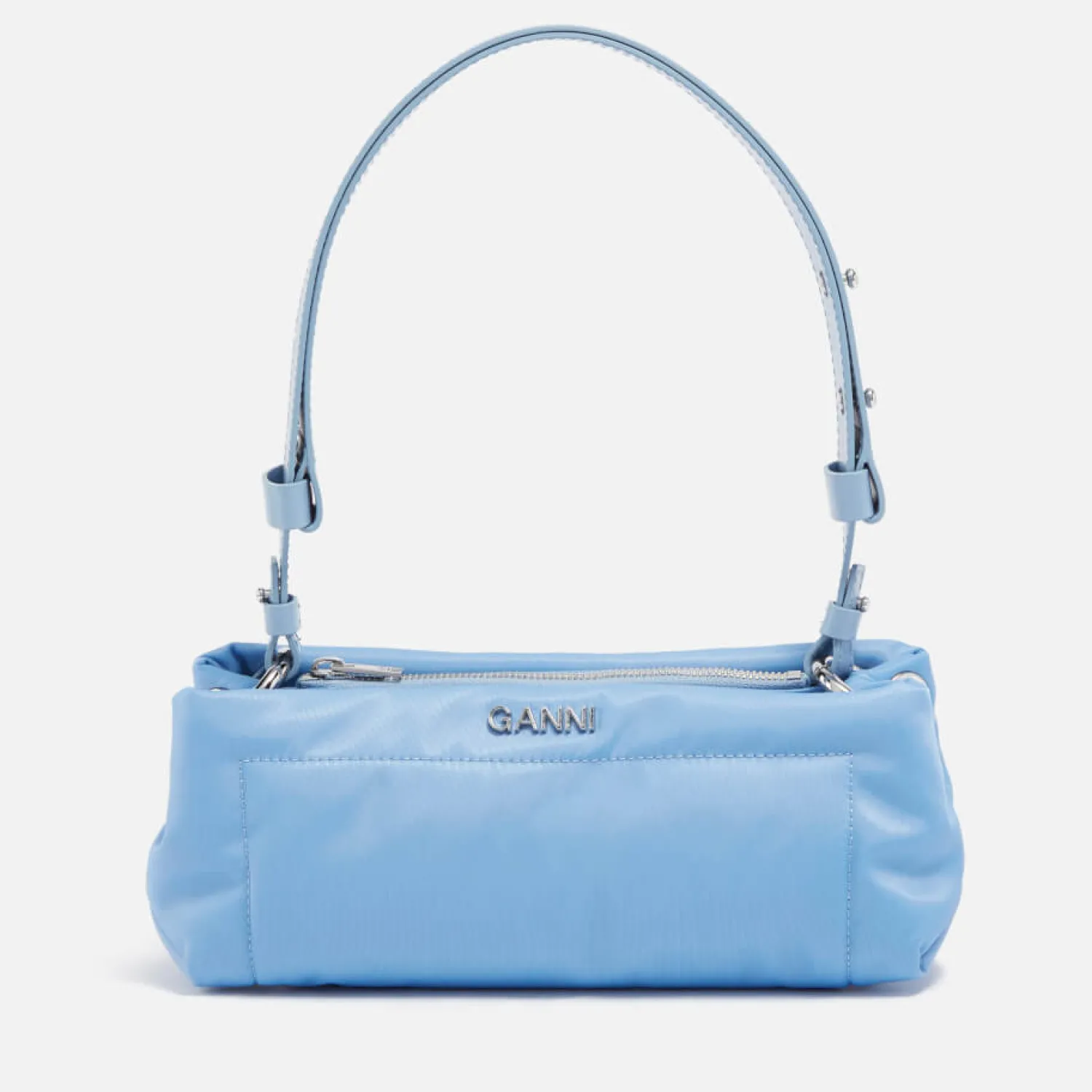 Ganni Adopts A Modern Approach To The Retro Baguette Silhouette With This Cornflower Blue Pillow Bag. Crafted From Padded Shell Its Technical Feel Is Elevated With A Smooth Adjustable Leather Strap And Signature Silver-Tone Branding.