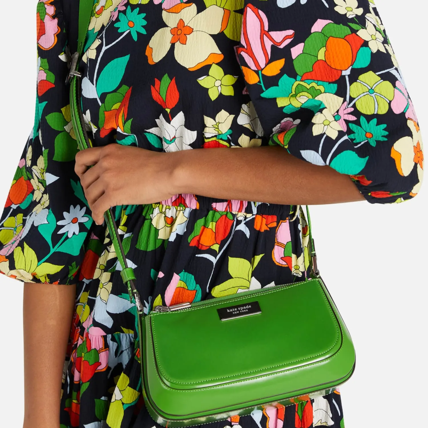 Kate Spade New York Sam Icon Crossbody BagGreen LeatherTop HandleSilver-Toned HardwareBranded DetailingZip Fastening